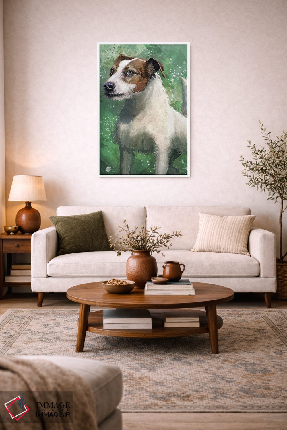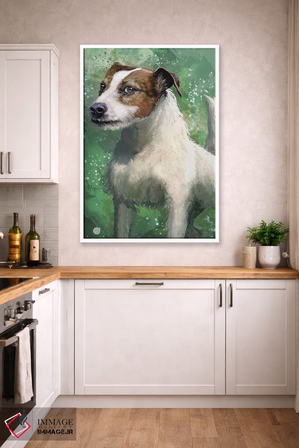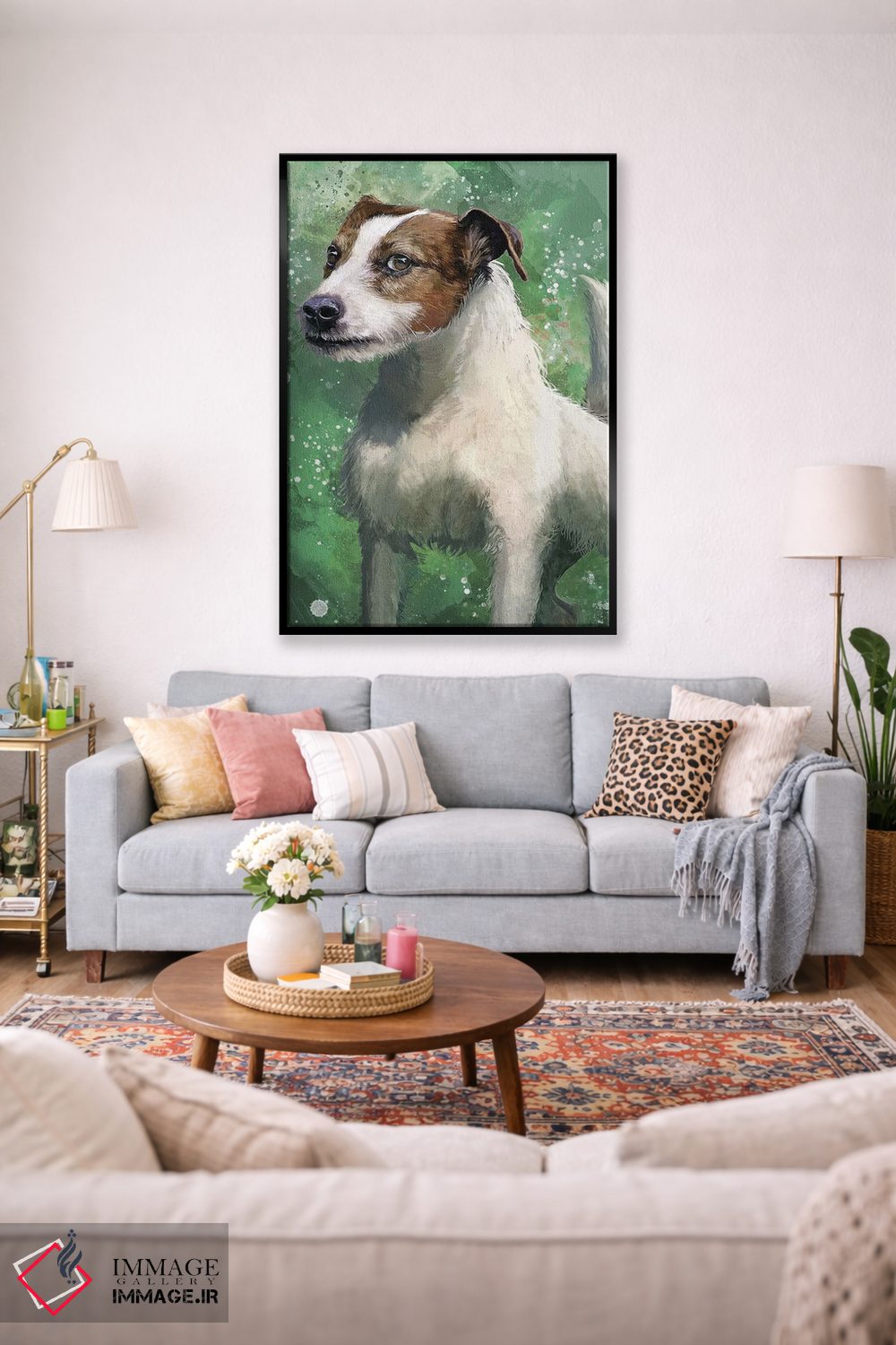 اگر به آثار حیوانات علاقه دارید، «جک راسل (نژاد سگ)» اثرِ «لوییز گلبی» فضا را صمیمیتر و دعوتکنندهتر نشان میدهد، برای کافههای کوچک و صمیمی گزینهٔ مناسبیست. هر بار نگاهش میکنید، یک جزئیات تازه به چشم میآید.