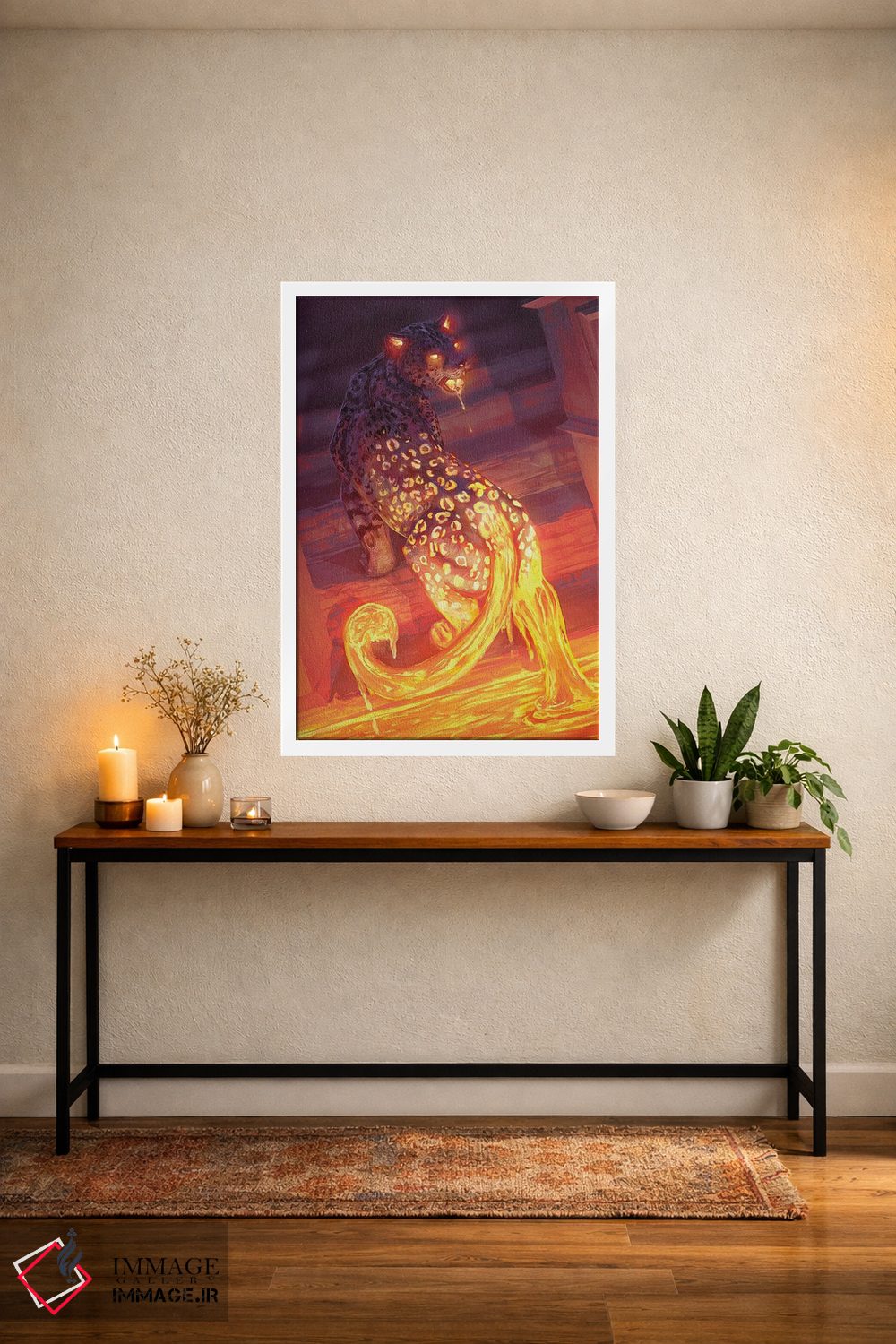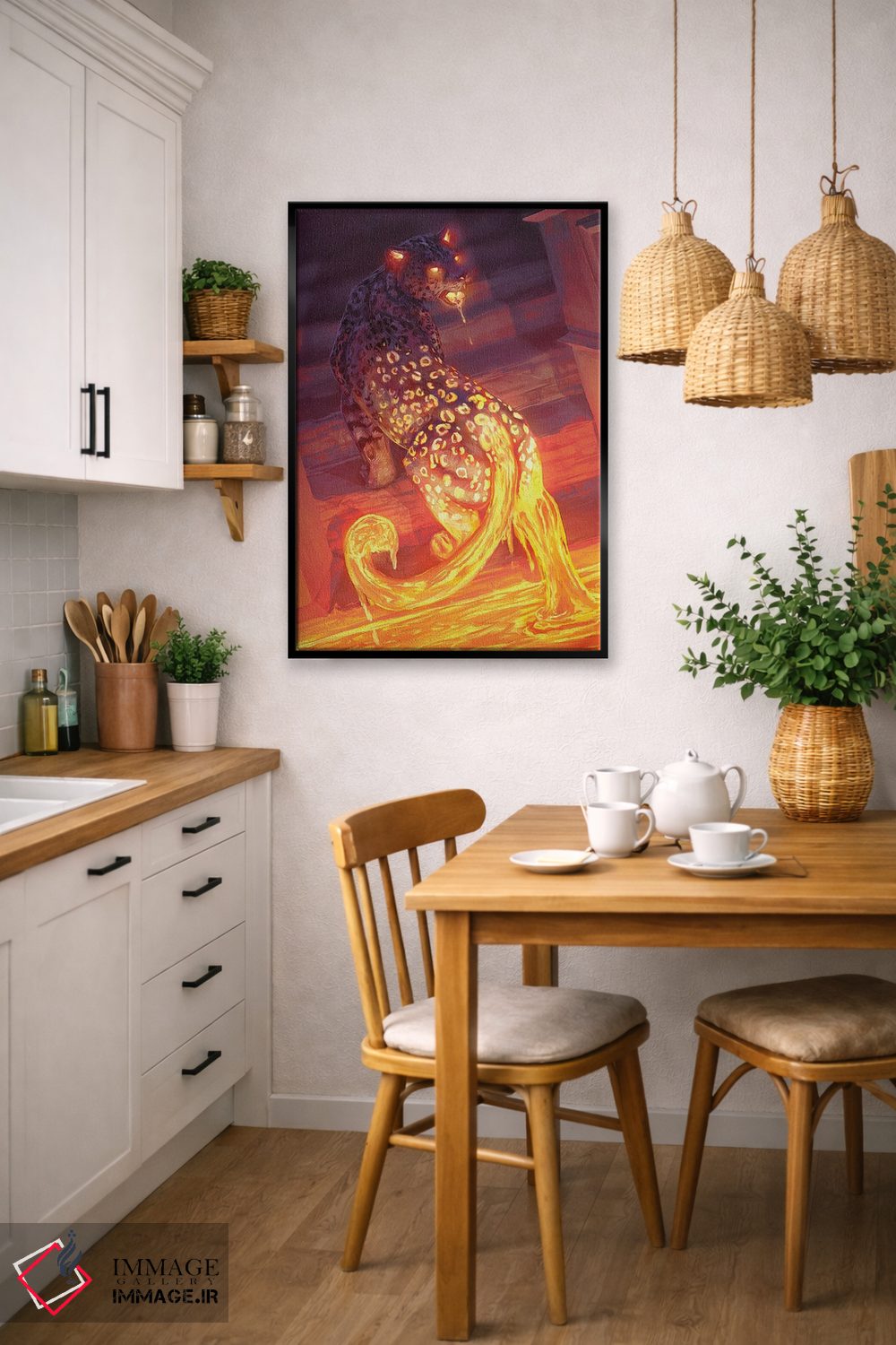 در «پلنگ گدازه» اثرِ «لوییز گلبی»، حضور حیوانات به فضا، گرمیِ ملایم اضافه میکند؛ برای خانههایی با چوب و پارچههای گرم انتخابی خوشسلیقه است. برای دیوار گالریوار هم گزینهٔ خوبیست.