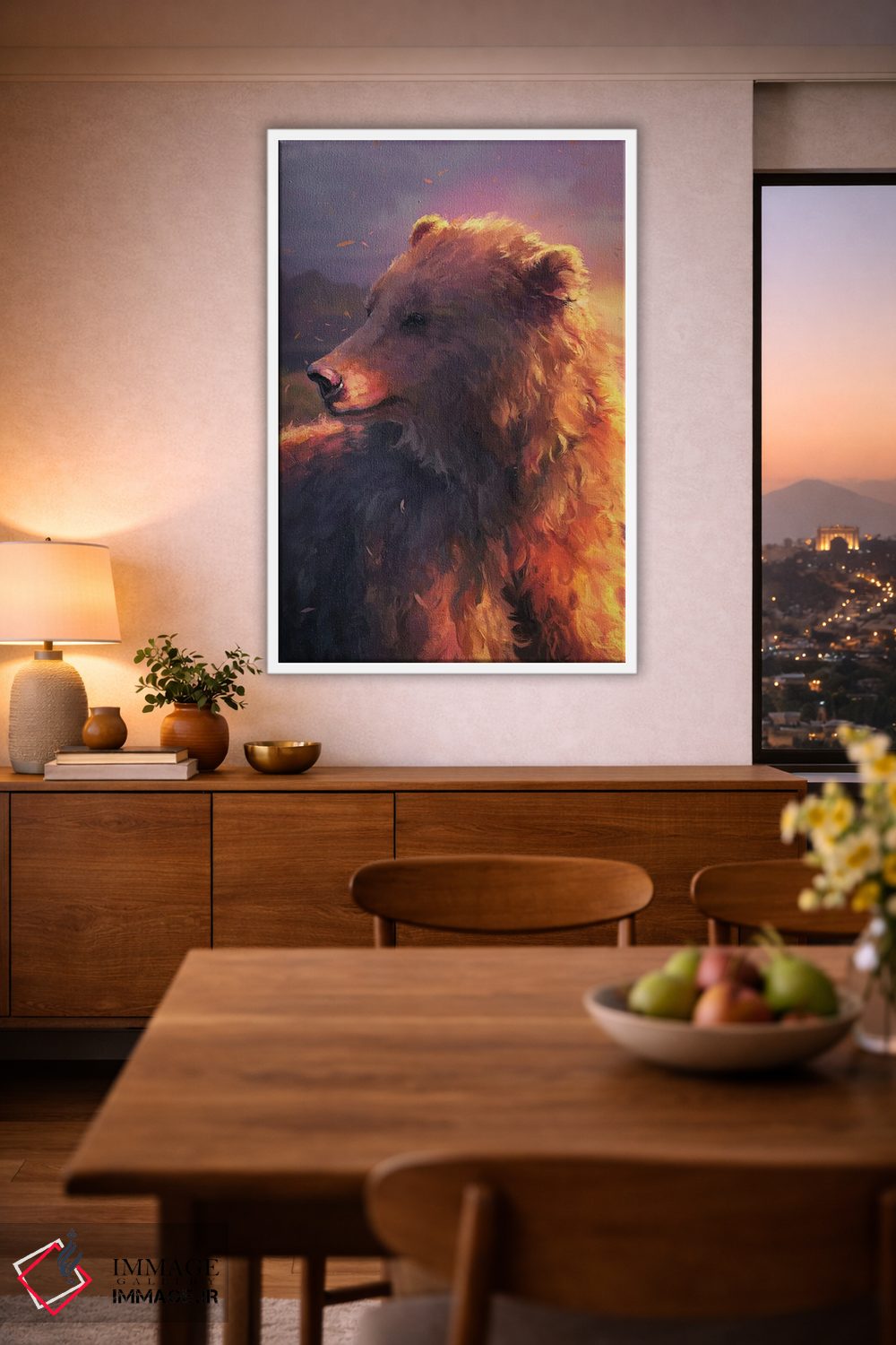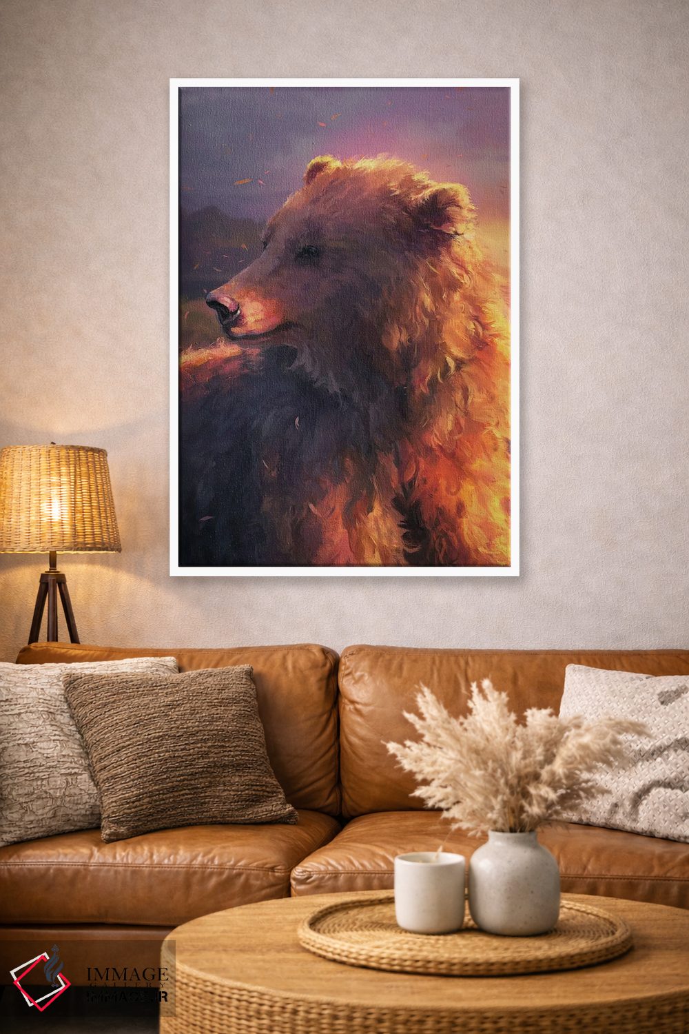 بوم گالری ایماژ نسخهی چیدماناتیوِ حرفهای از یک اثر هنری است؛ روی کنواس بدون اسید با بافت ظریف و یکنواخت با اجرای چاپ هنری جیکلی (Giclée) برای آرتپرینتهای جدی و جوهرهای آرشیوی Epson UltraChrome HDR برای بازنمایی بهتر تونهای حساس؛ روی دیوار، کار یکدستتر و خوشکیفیتتر دیده میشود.