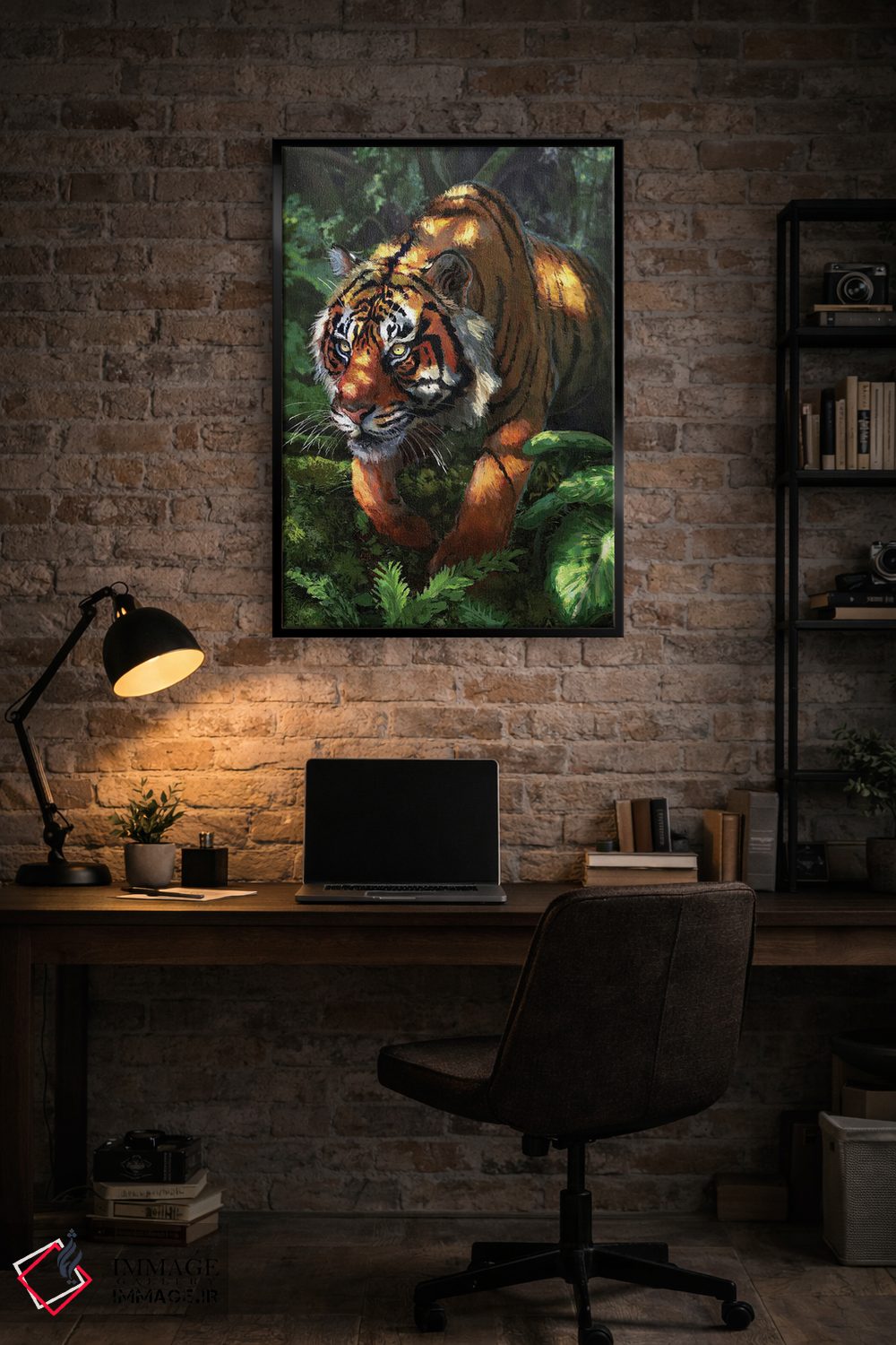 براساس پالت ترکیبی اثر، قاب تیک گرم (چوبی) پیشنهاد اول است و مشکی مات (فریم متوسط) مکمل.