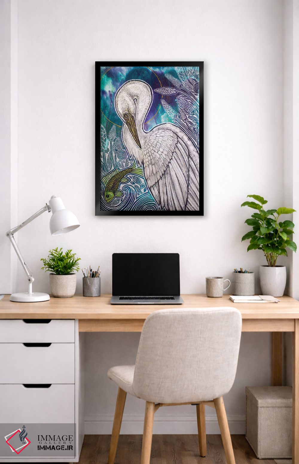 تابلو دکوراتیو حواصیل سفید بزرگ اثر لینت شلی