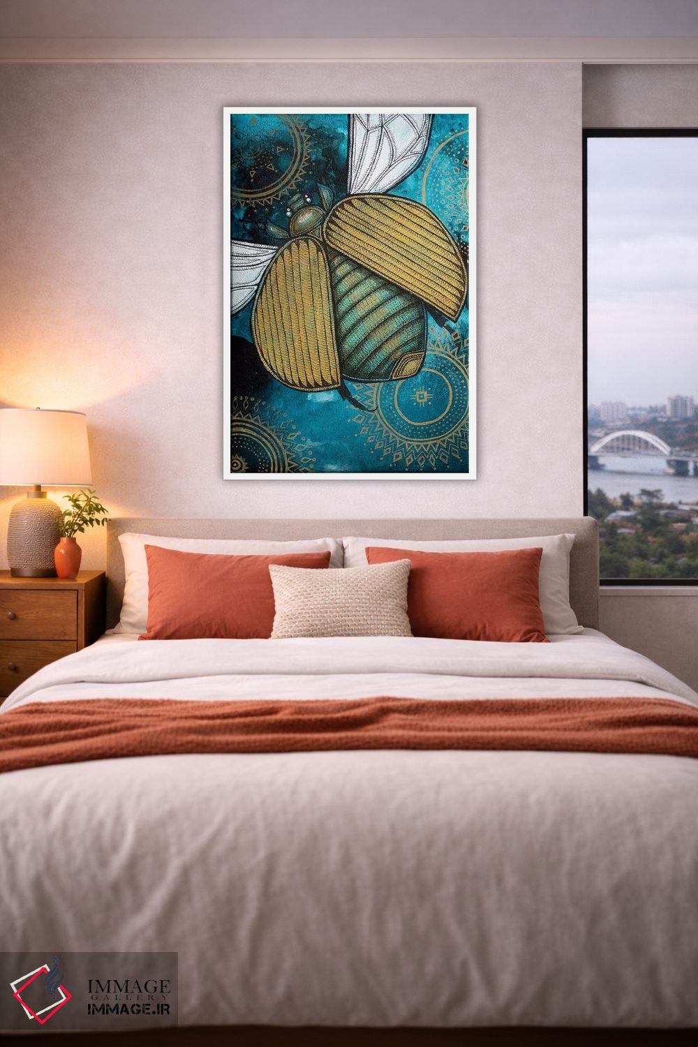 «اسکاراب طلایی (سوسک مقدس)» اثرِ «لینت شلی» از آن کارهاییست که به دیوار، انرژیِ نرم و زنده میدهد؛ برای اتاق کودک (بدون لحن کودکانه) انتخاب خوبیست. برای دیوار گالریوار هم گزینهٔ خوبیست.