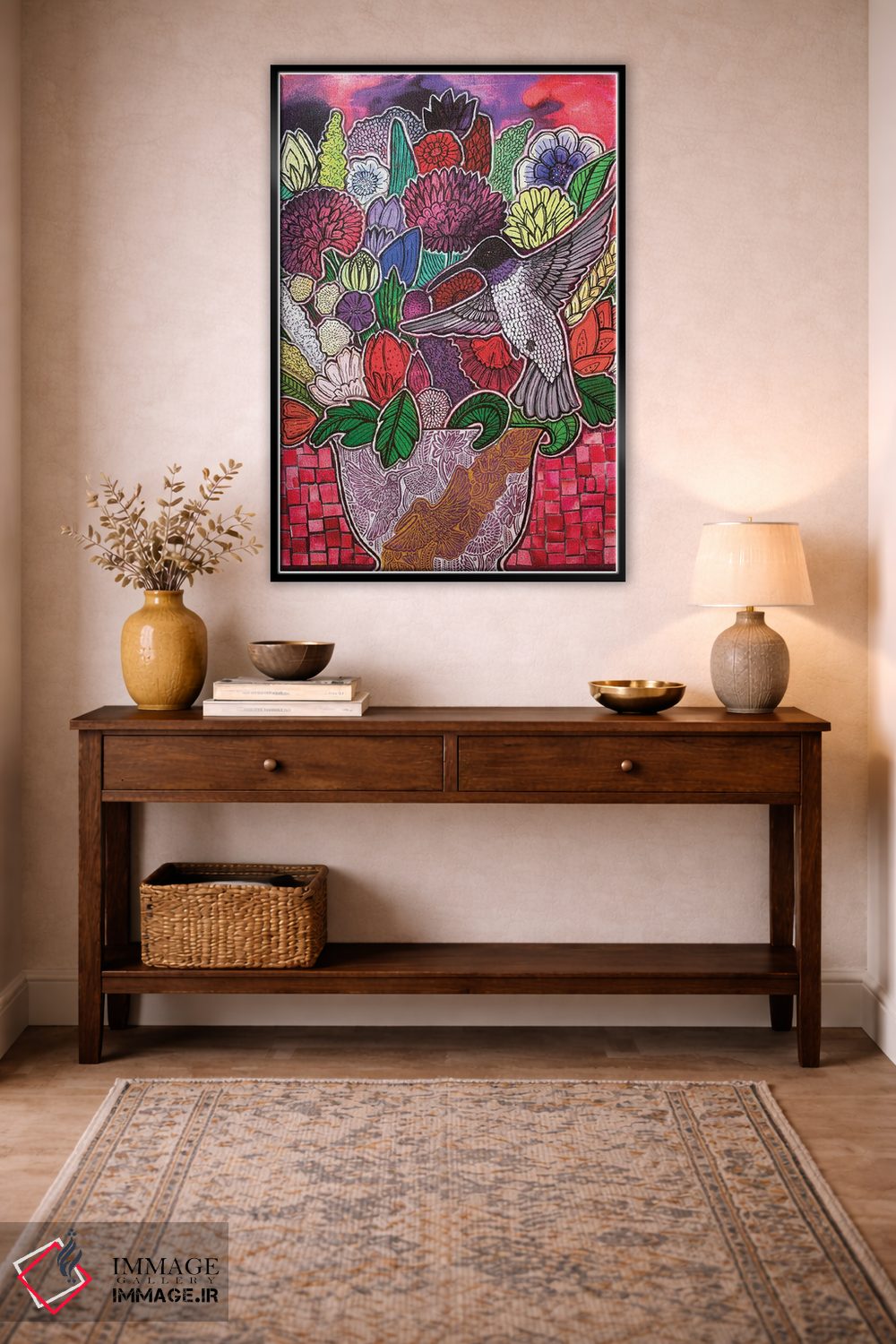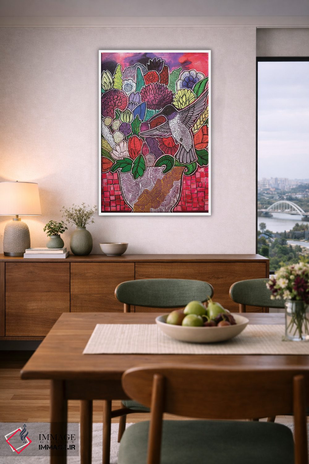 اگر به آثار حیوانات علاقه دارید، «شادی مرغ مگسخوار» اثرِ «لینت شلی» به فضا، گرمیِ ملایم اضافه میکند، برای دکورهایی با رنگهای خنثی گزینهٔ مناسبیست. با نورپردازی نقطهای، جذابتر هم میشود.