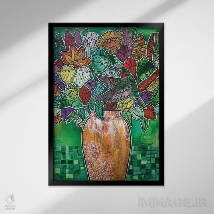 براساس پالت ترکیبی اثر، قاب تیک گرم (چوبی) پیشنهاد اول است و مشکی مات (فریم متوسط) مکمل. برای سفارشهای پروژهای با ابعاد و قابهای اختصاصی با ایماژ در تماس باشید.