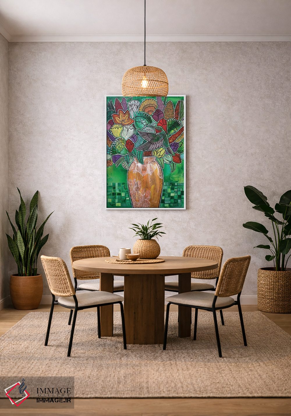 در یک جمله: اگر دوست دارید اثر در فضا «باز و روشن» دیده شود، نور موضعی ملایم نتیجه را بهتر نشان میدهد و چیدمان را یکدستتر نشان میدهد. برای گالریوال و چیدمان چندقابی، میتوانید هماهنگ کنید تا هماهنگی فضا کاملتر شود.