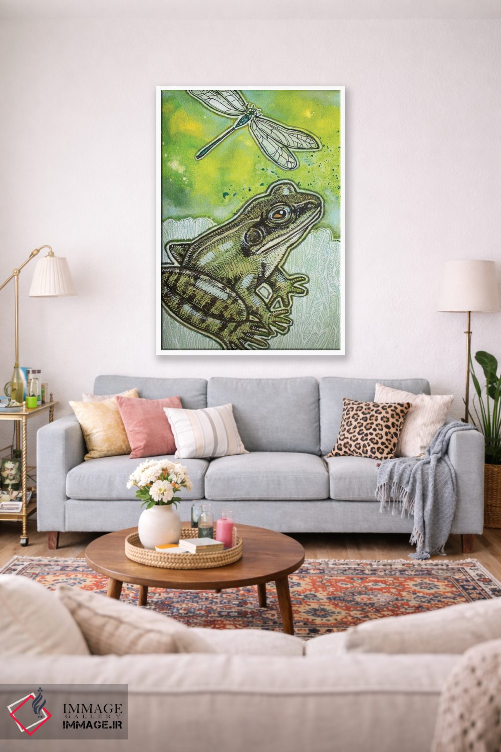 اگر به آثار حیوانات علاقه دارید، «کمی سبز» اثرِ «لینت شلی» گرما و شخصیت به فضا اضافه میکند، برای دکورهایی با رنگهای خنثی گزینهٔ مناسبیست. هر بار نگاهش میکنید، یک جزئیات تازه به چشم میآید.