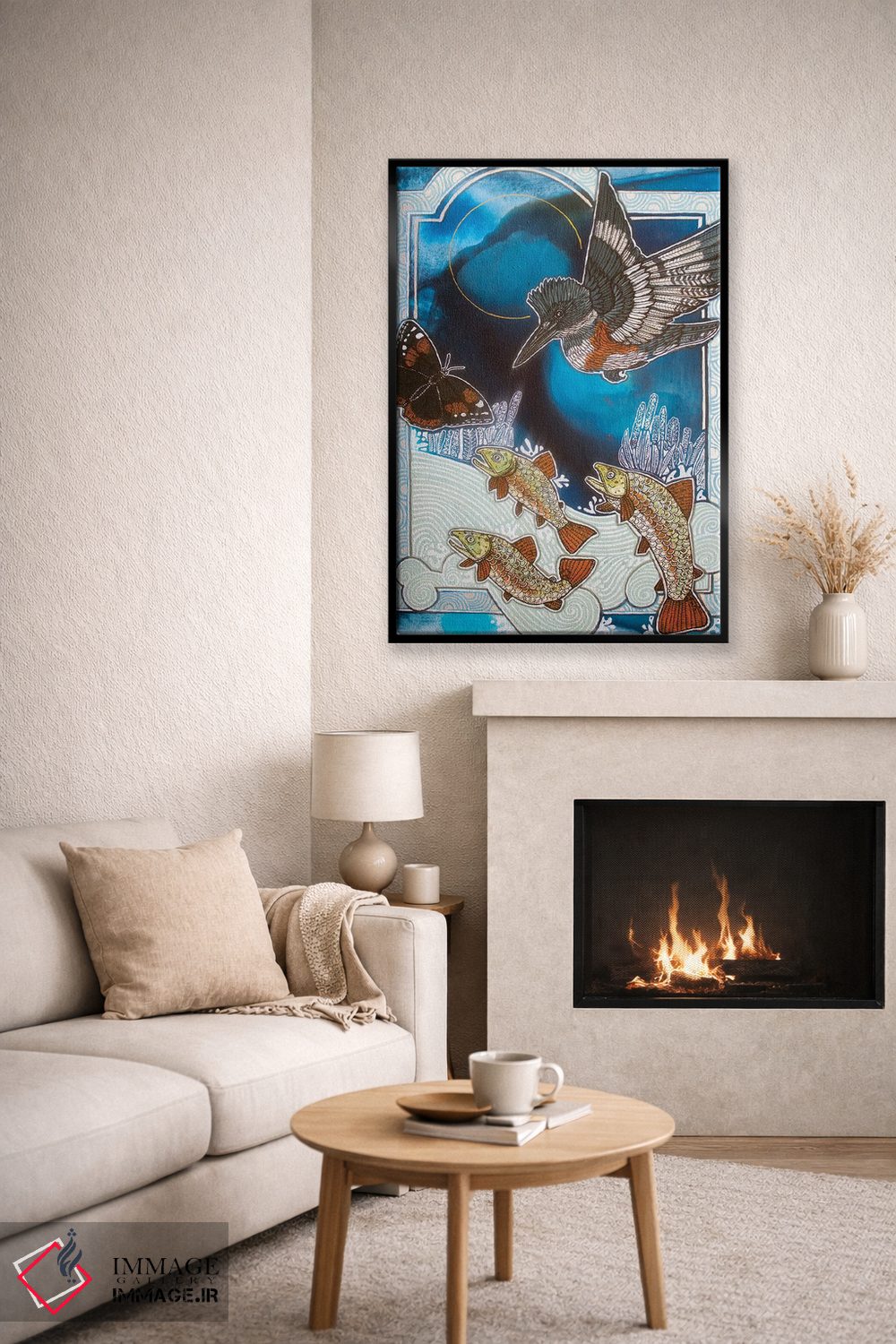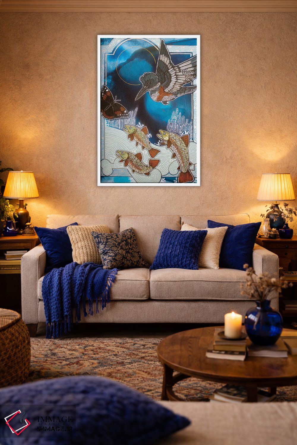 ساختار بوم گالری ایماژ طوری است که اثر روی دیوار «پرداختشده» و حرفهای دیده شود—نه پرزرقوبرقِ بیپایه؛ بلکه دقیق و خوشپرداخت. بافت ظریف کنواس کمک میکند حس اثر هنری را در نگاه نزدیک نگه میدارد. در بافت ظریف کنواس، حس اثر هنری را در نگاه نزدیک نگه میدارد و نتیجه را یکدستتر میکند. در نهایت، نتیجه چیزی شبیه تفاوت نسخهی معمولی با نسخهی باکیفیتتر است: نه رنگِ بیشتر، بلکه پرداخت بهتر؛ در کنار نورپردازی درست، جلوهی گالریوار بیشتری حس میشود. اگر یک اکسنت رنگی کوچک در اکسسوریها تکرار شود، هماهنگی محیط کاملتر میشود.