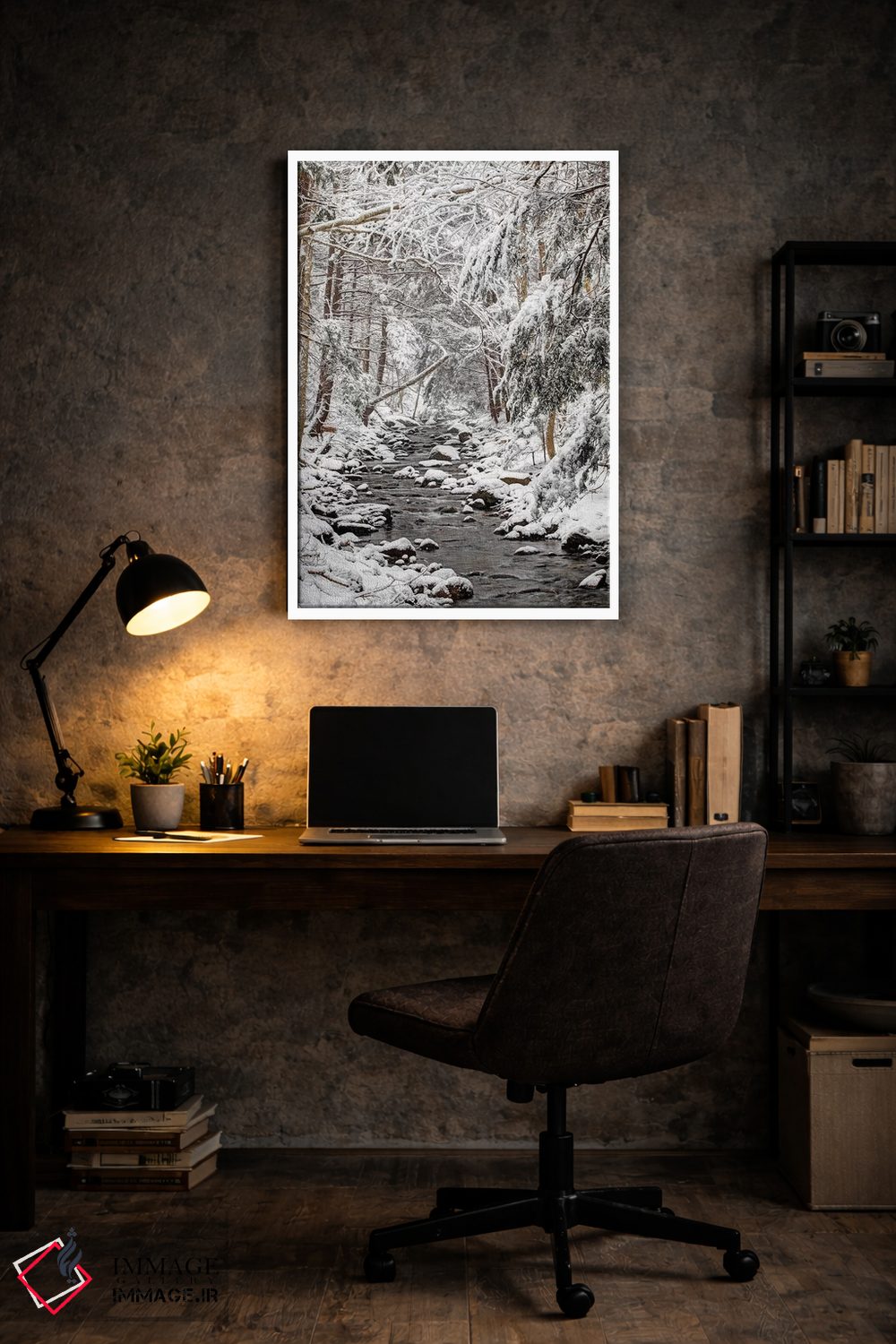 «جویبار در زمستان، نوا اسکوشیا، کانادا» اثرِ «اسکات لزلی» از آن انتخابهاییست که به دیوار، شخصیت و جهت میدهد؛ برای دکورهای کلاسیک با چوب و پارچه انتخابی عالی است. برای هدیه دادن هم انتخابی محترمانه و امن است.