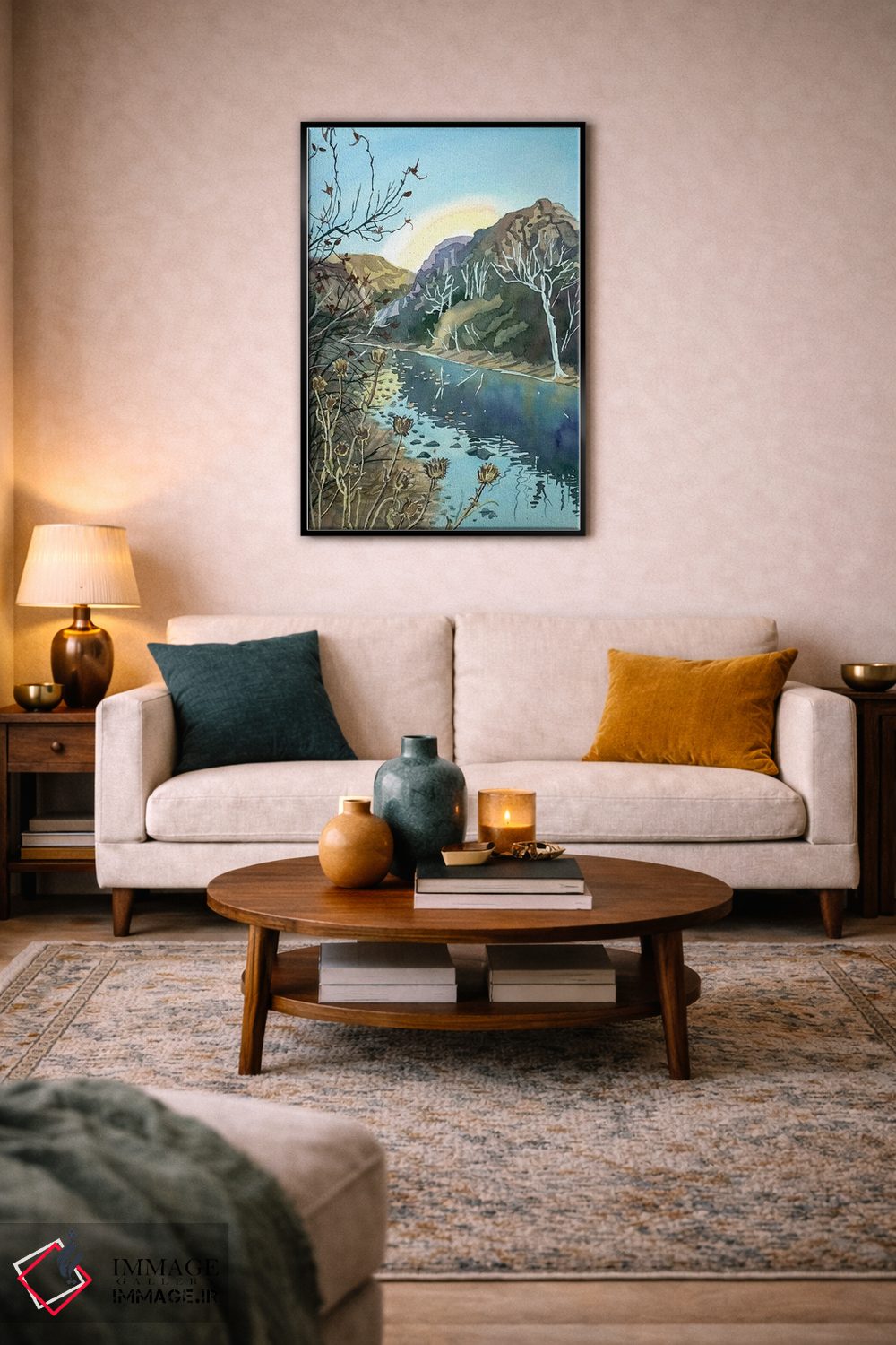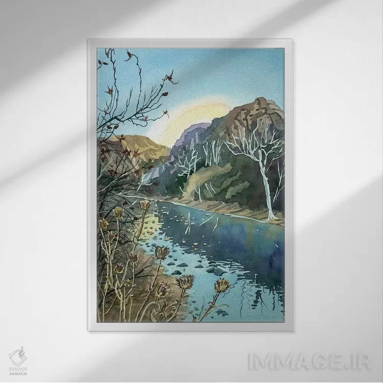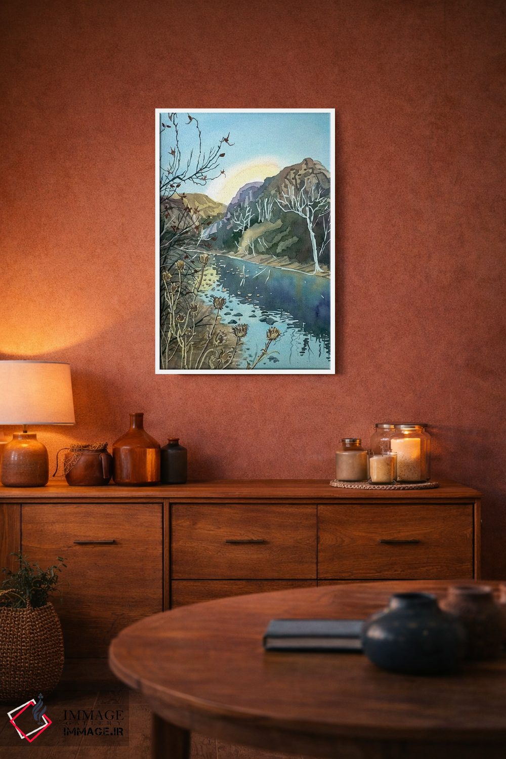 براساس پالت سرد اثر، قاب بلوط روشن (چوبی) پیشنهاد اول است و استخوانی ملایم مکمل. برای سفارشهای پروژهای با ابعاد و قابهای اختصاصی با ایماژ در تماس باشید.