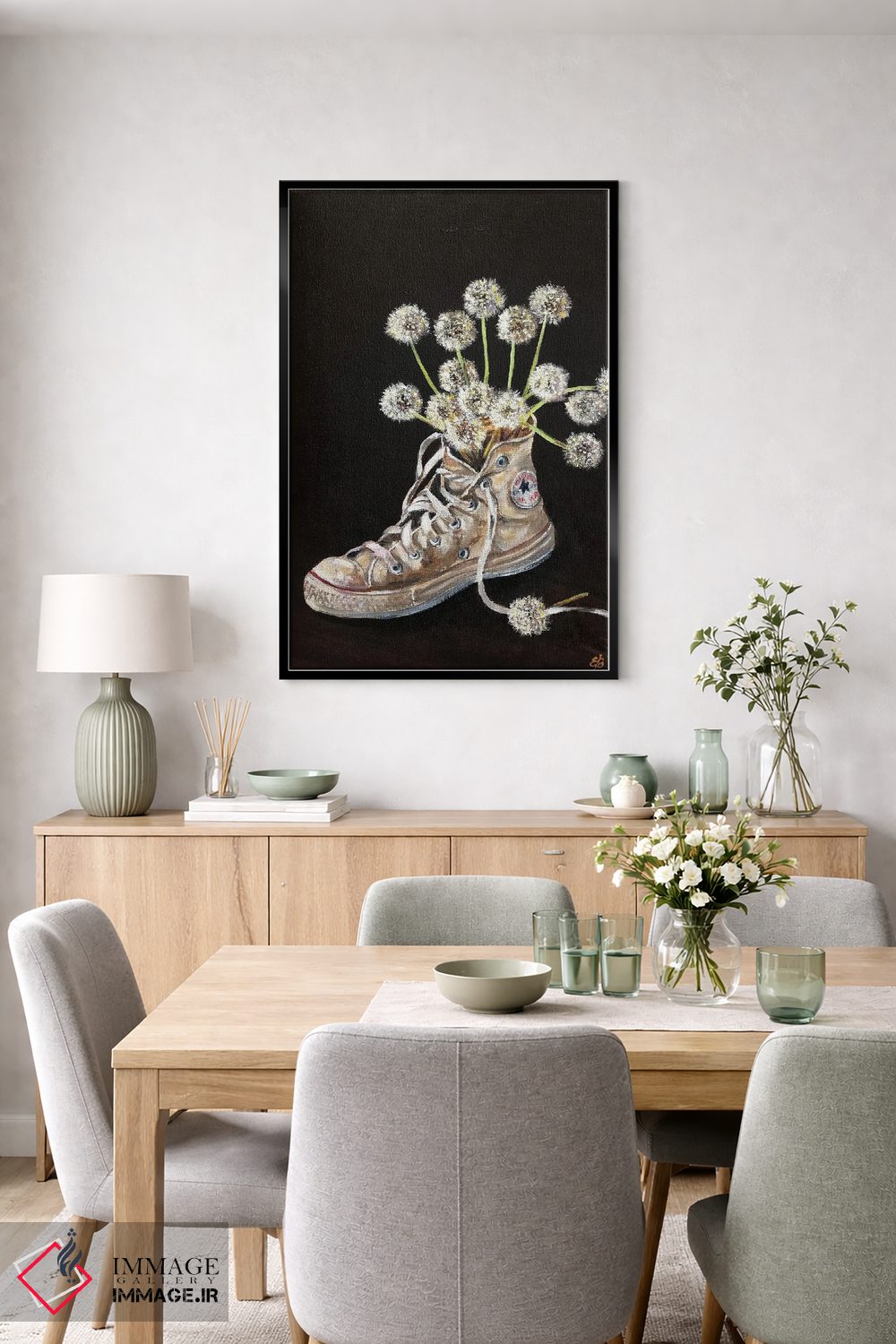 اگر دوست دارید دیوار روشنتر و آرامتر دیده شود، «قاصدکها» اثرِ «لنا اسمیرنُوا» برای دیوارهای ساده، یک لطافتِ دقیق میسازد، برای فضای غذاخوری گزینهٔ مناسبیست. برای دیوار گالری هم ترکیبپذیر و خوشنشین است.