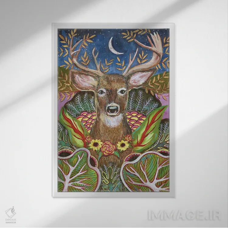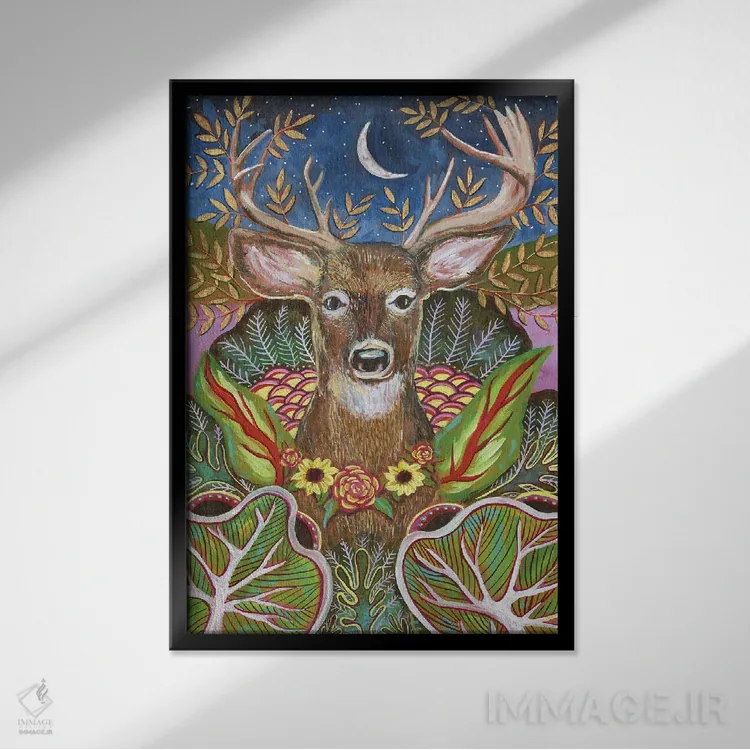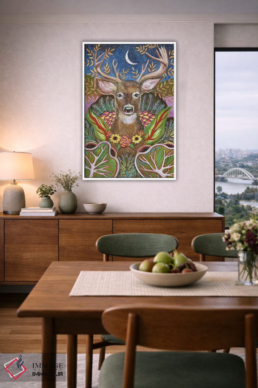براساس پالت ترکیبی اثر، قاب تیک گرم (چوبی) پیشنهاد اول است و مشکی مات (فریم متوسط) مکمل. برای سفارشهای پروژهای با ابعاد و قابهای اختصاصی با ایماژ در تماس باشید.