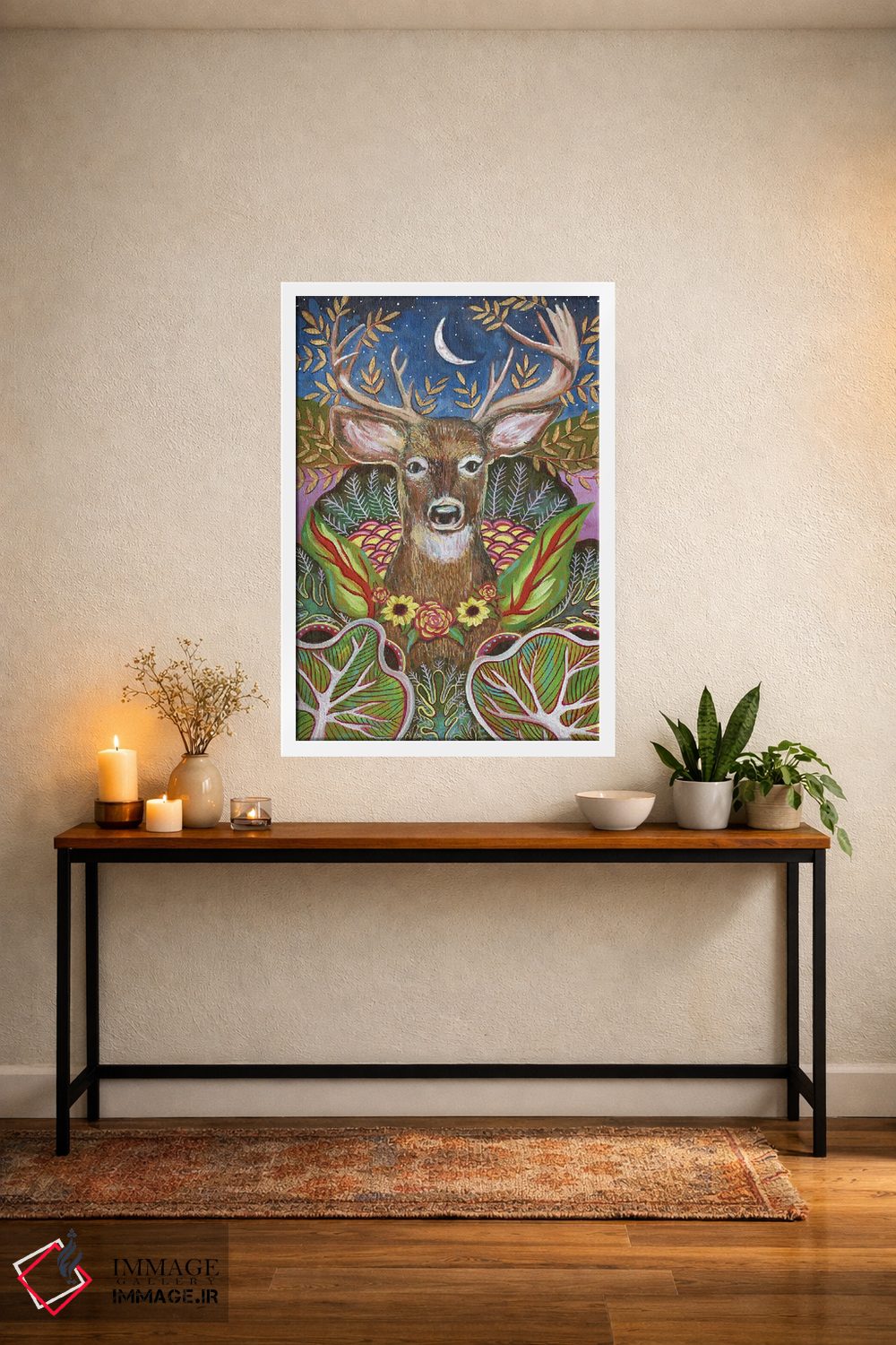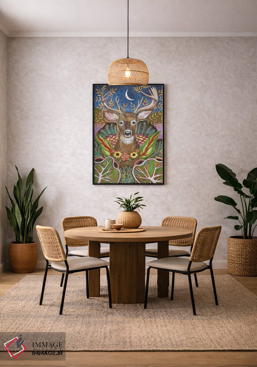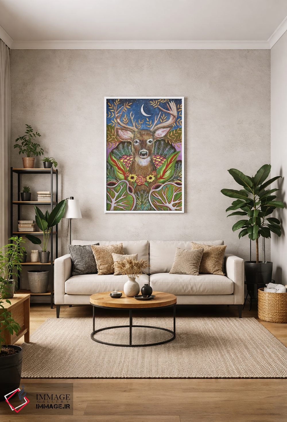برای اتاقی که به یک عنصر دوستداشتنی نیاز دارد، «هماهنگ شدن با محیط (اصطلاح: استتار)» اثرِ «لینهآ توبیاس» در کنار رنگهای خنثی، تضاد دلچسبی میسازد؛ برای دیوار کنار میز کار انتخابی خوشسلیقه است. حسش صمیمی است، اما کیفیتش جدی و خوشپرداخت.