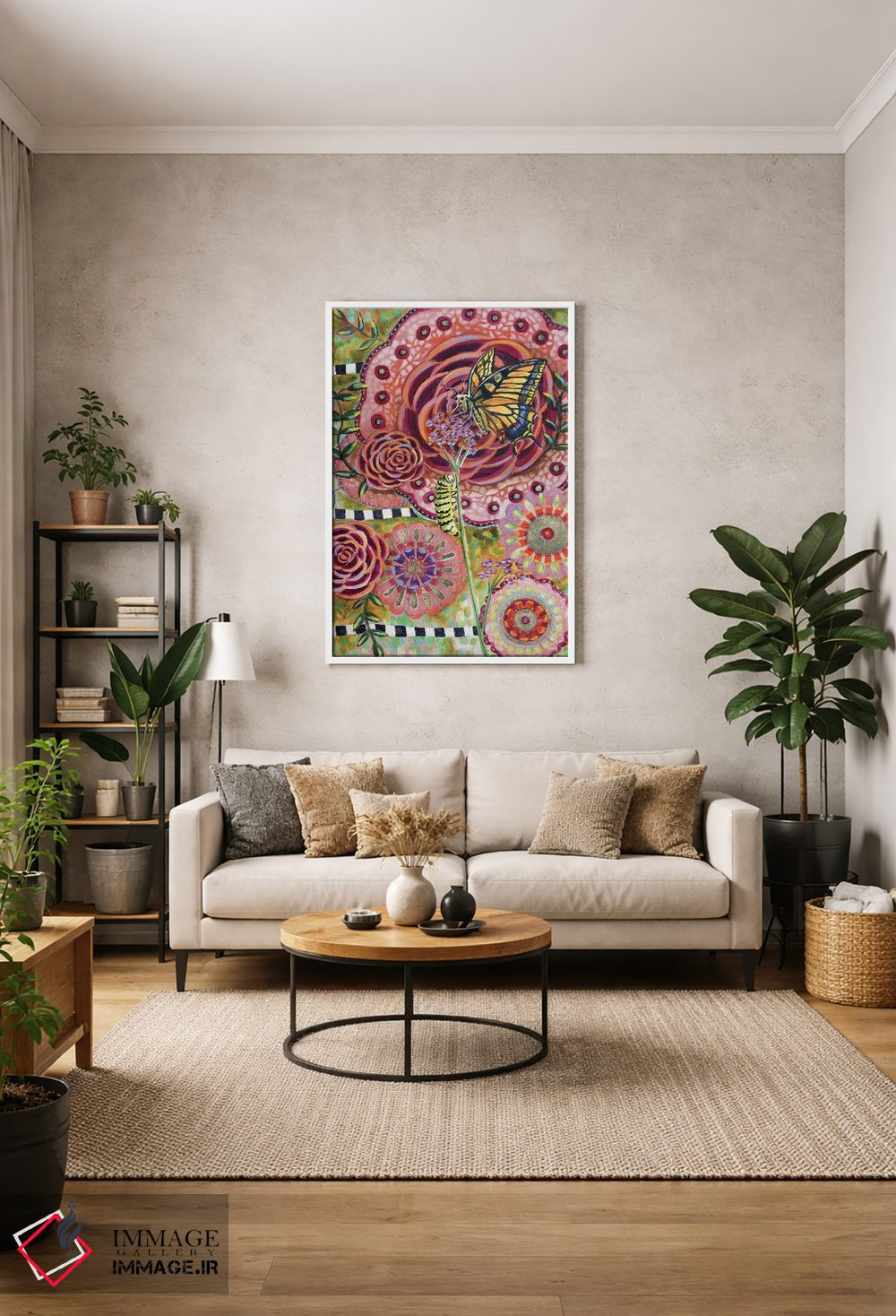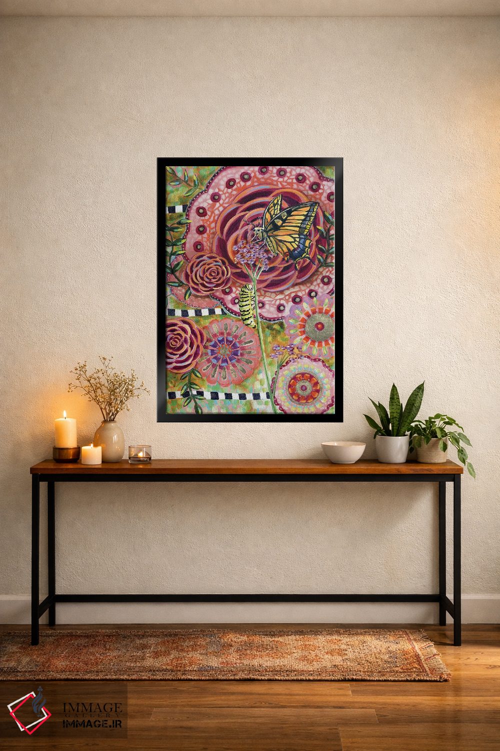 برای دیواری که میخواهید نرمتر دیده شود، «پروانه دُمچلچلهای و وربنا» اثرِ «لینهآ توبیاس» به دیوار، روشناییِ ملایم و دلنشین میدهد؛ برای هدیه دادن انتخابی خوشسلیقه است. در کنار گیاهان آپارتمانی، هماهنگتر هم میشود.