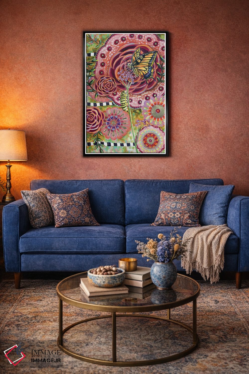 براساس پالت ترکیبی اثر، قاب تیک گرم (چوبی) پیشنهاد اول است و مشکی مات (فریم متوسط) مکمل. برای سفارشهای پروژهای با ابعاد و قابهای اختصاصی با ایماژ در تماس باشید.
