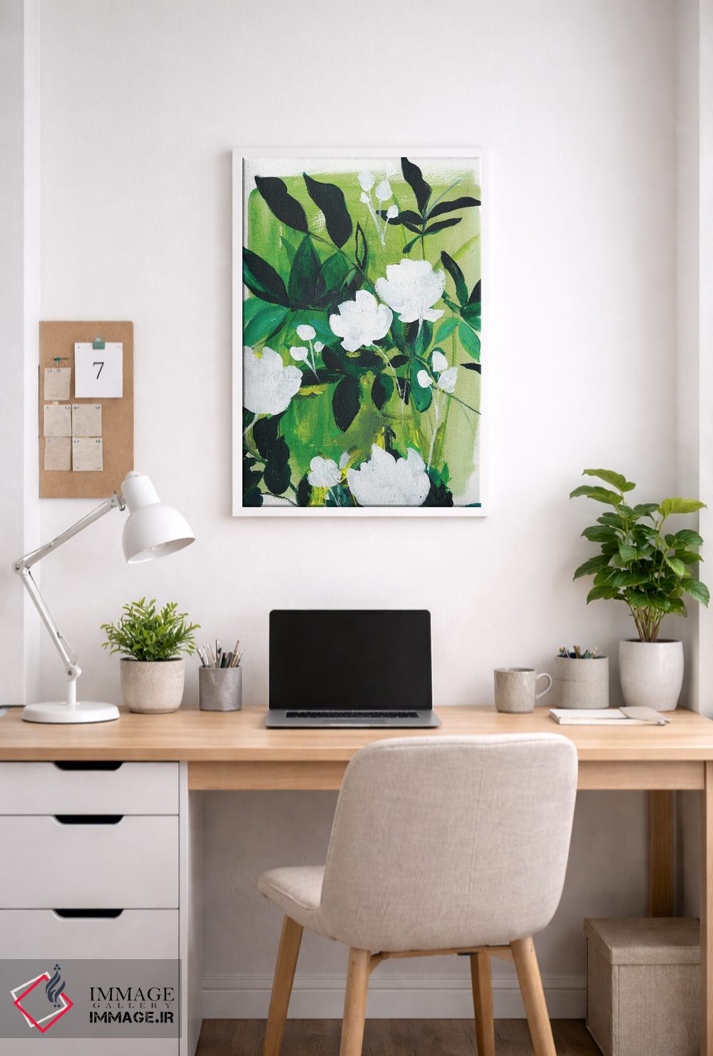 براساس پالت سرد اثر، قاب بلوط روشن (چوبی) پیشنهاد اول است و استخوانی ملایم مکمل. برای سفارشهای پروژهای با ابعاد و قابهای اختصاصی با ایماژ در تماس باشید.