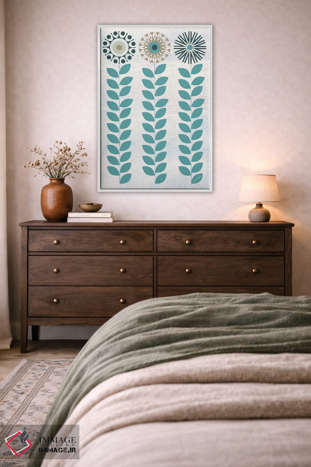 ساختار بوم گالری ایماژ طوری است که اثر روی دیوار «پرداختشده» و حرفهای دیده شود—نه پرزرقوبرقِ بیپایه؛ بلکه دقیق و خوشپرداخت. بافت ظریف کنواس باعث میشود حس اثر هنری را در نگاه نزدیک نگه میدارد بدون اغراق؛ فقط دقیقتر. ارائهی آماده نصب باعث میشود اثر را مرتب و یکدست روی دیوار مینشاند و در چیدمانهای مدرن و کمینهگرا خیلی خوب مینشیند. این کیفیت برای دکورهای دقیقتر و پروژههای حرفهای خودش را بهتر نشان میدهد؛ و اگر بخواهید، میتوان چیدمان را برای گالریوال هم پیشنهاد داد.