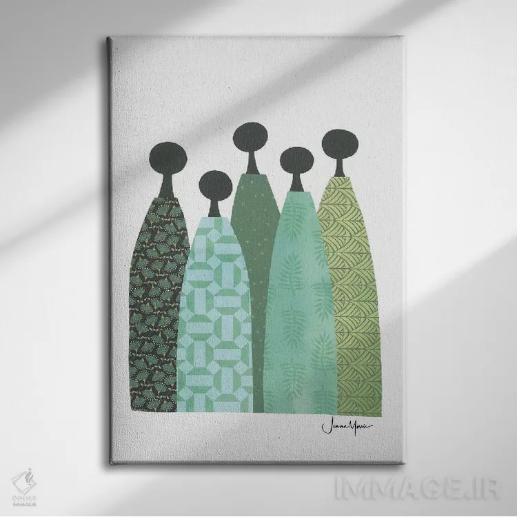 تابلو انتزاعی پنج زن خردمند با لباس سبز اثر لولوآرت استودیو