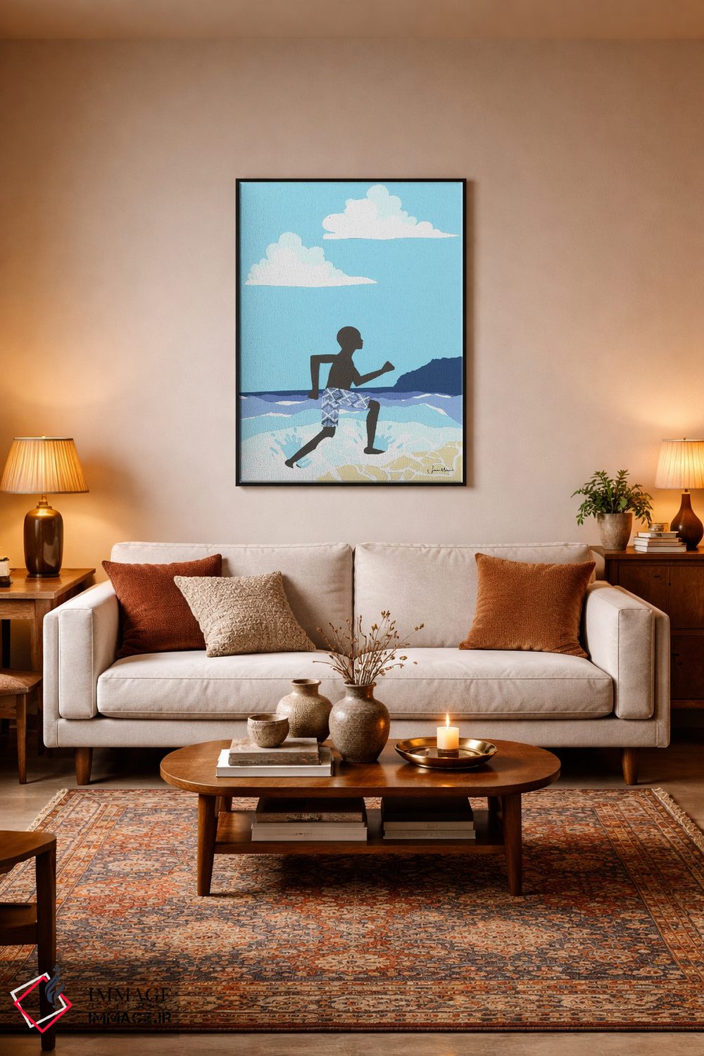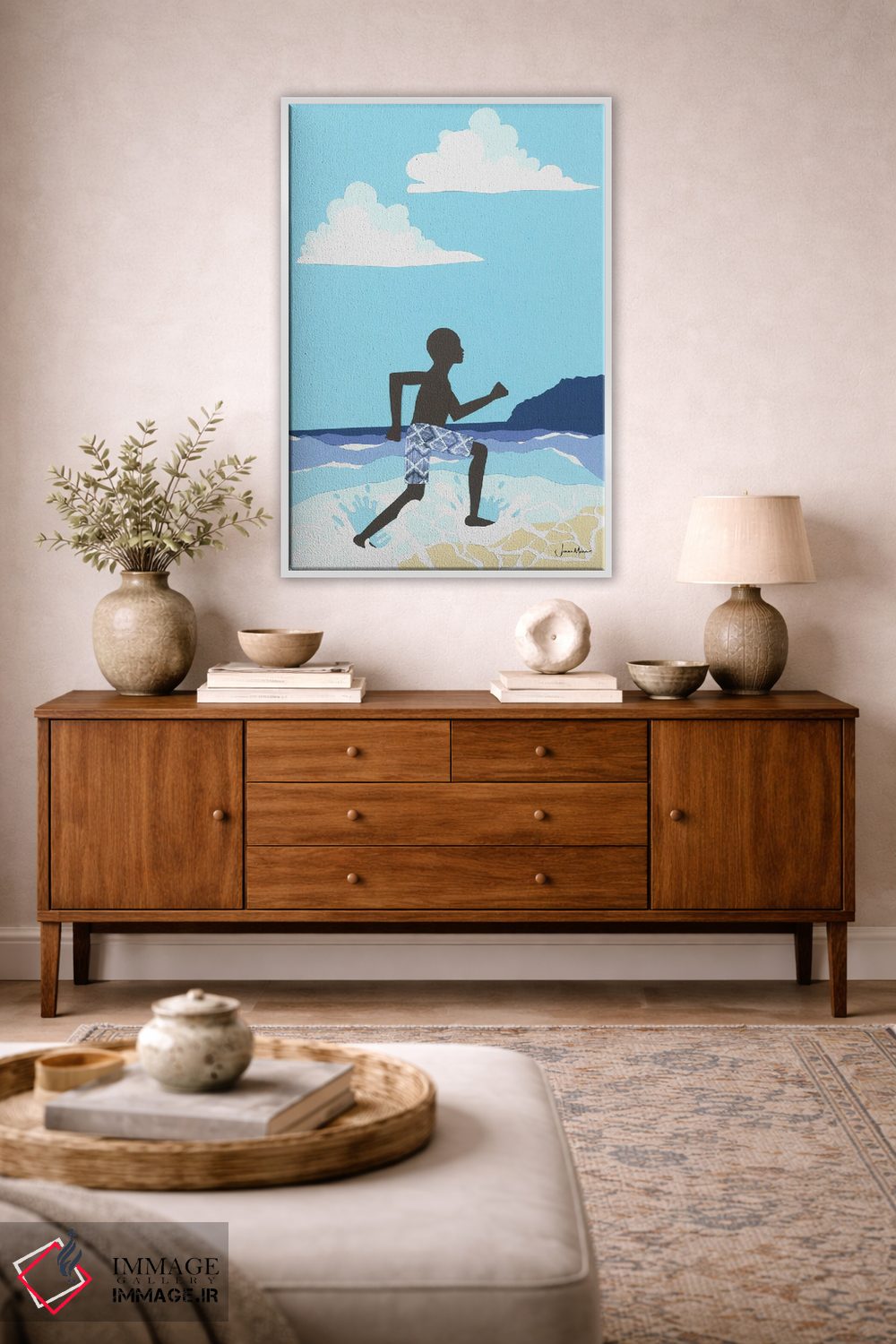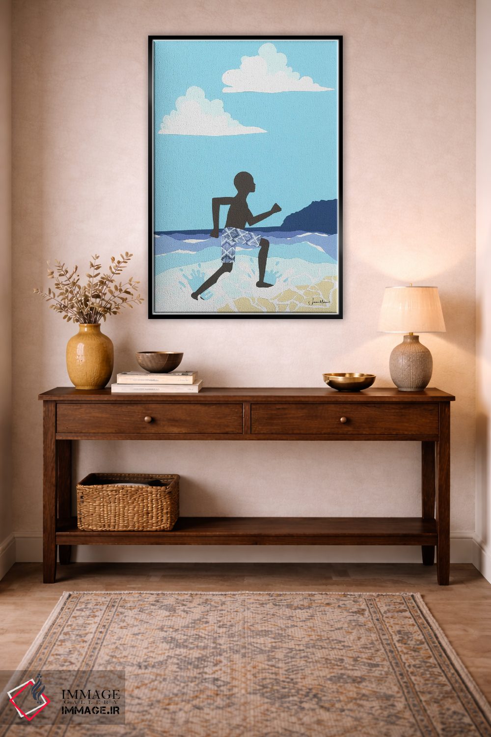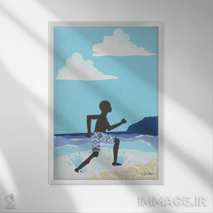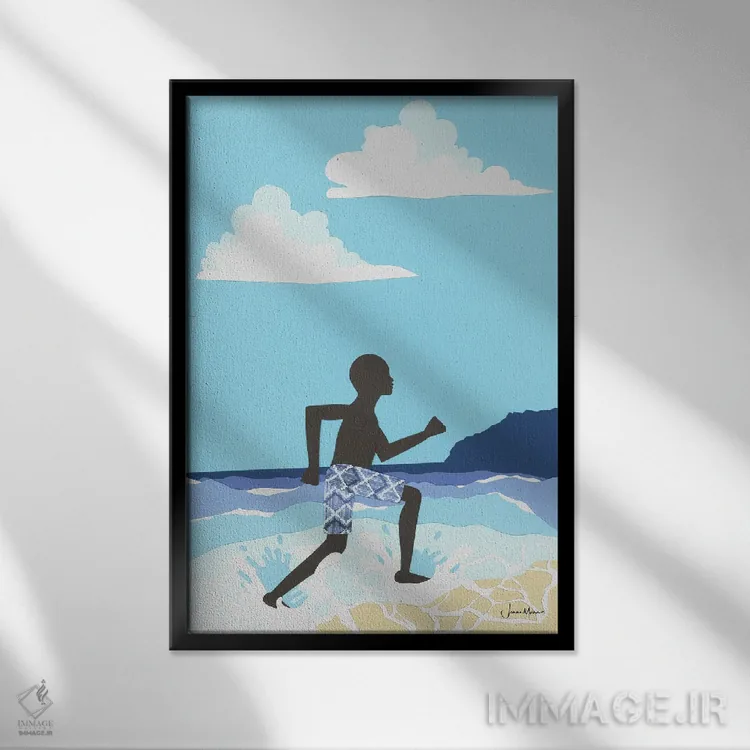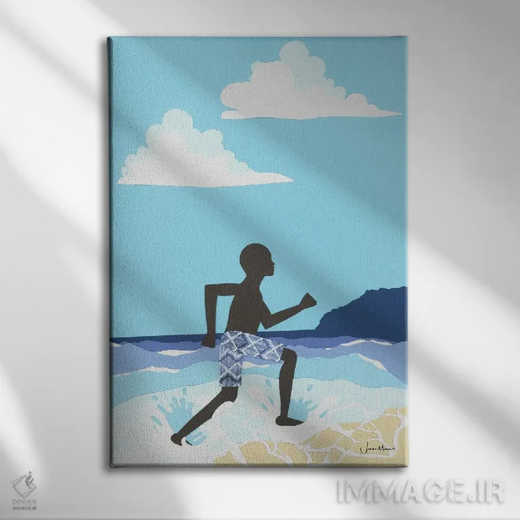 تابلو دکوراتیو شادی پسر سیاه پوست در ساحل اثر لولوآرت استودیو