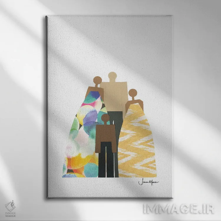 بوم گالری ایماژ نسخهی چیدماناتیوِ باکیفیت از یک اثر هنری است؛ روی کنواس سفیدِ یکدست و بدون اسید با فرآیند چاپ حرفهای جیکلی (Giclée) و کنترل دقیق تونها با جوهرهای آرشیویِ حرفهای برای لایههای رنگی خواناتر؛ حس نهایی نزدیکتر به ارائهی گالریوار است؛ نه صرفاً یک تصویر. اسمبل تمیز و آمادهی نصب؛ کشیدگی استاندارد روی کلاف و یراق مناسب.