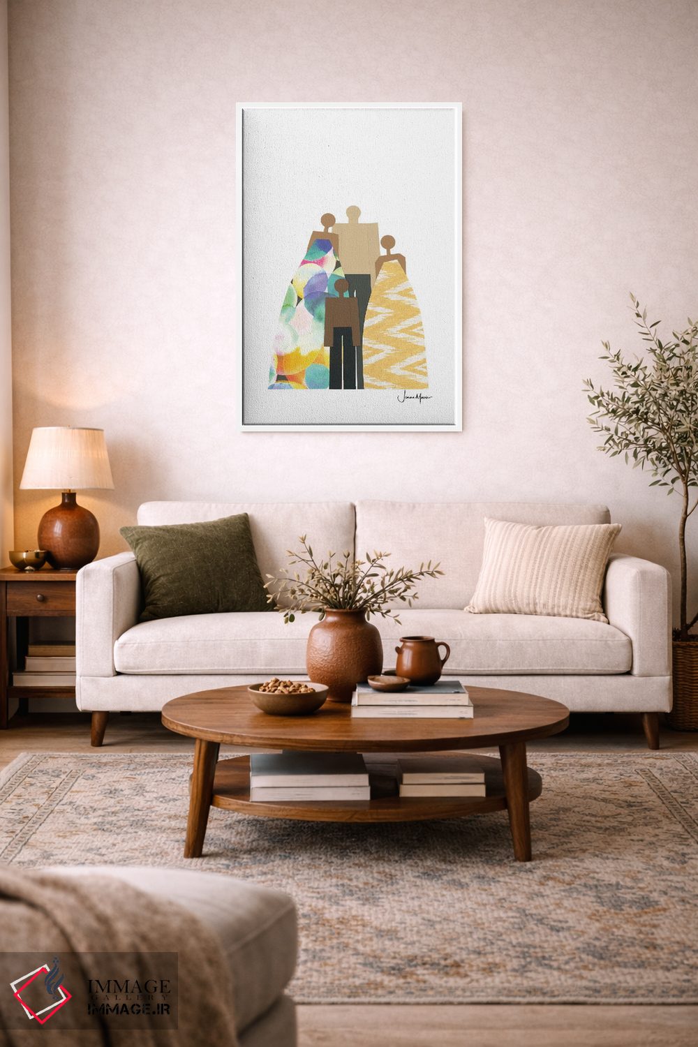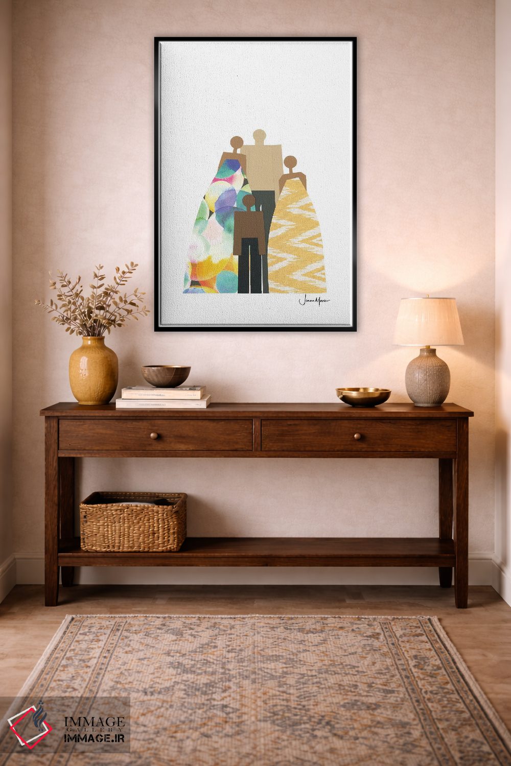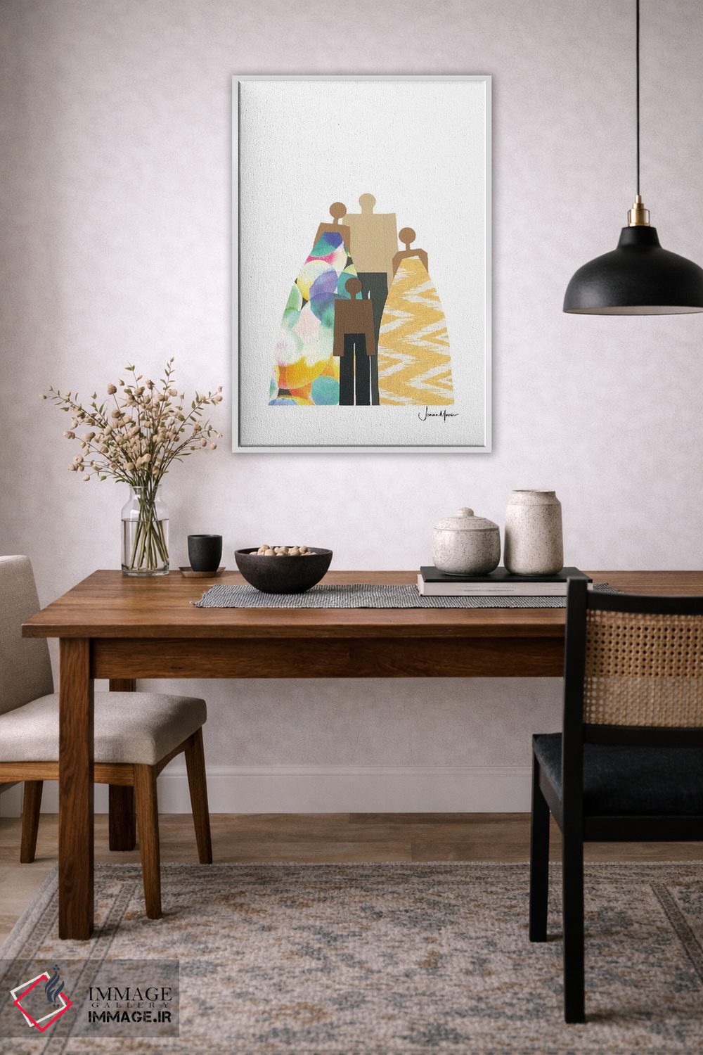 در «خانواده چهار نفره رنگارنگ» اثرِ «لولوآرتاستودیو (استودیو هنری)»، تاکید بر هویت و بیان تصویری باعث میشود در چیدمانهای مدرن هم تاثیرگذار بماند.