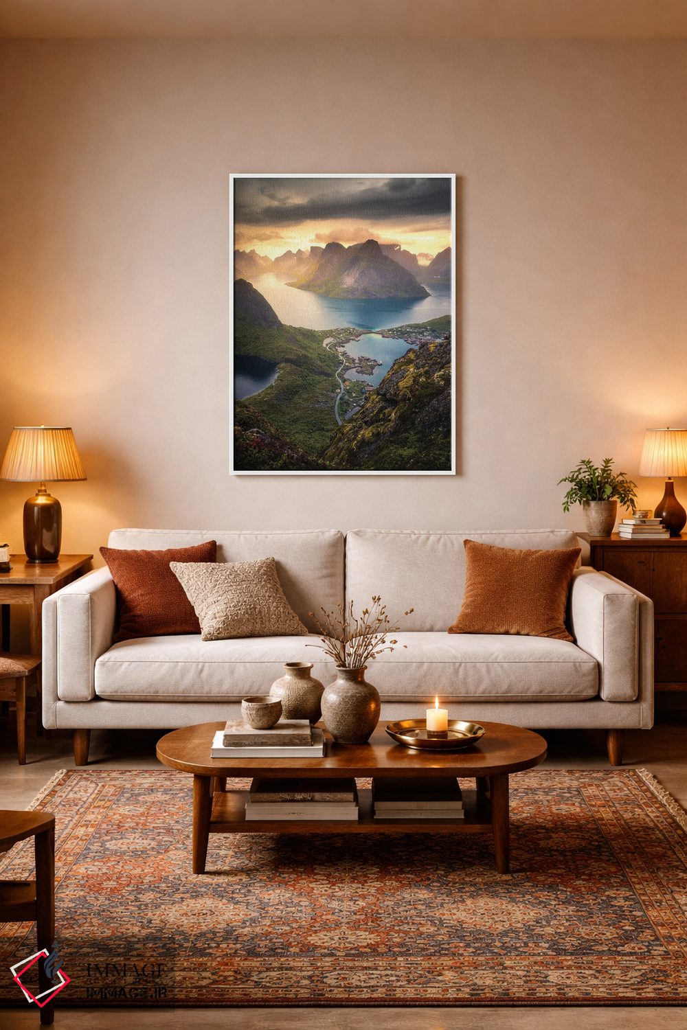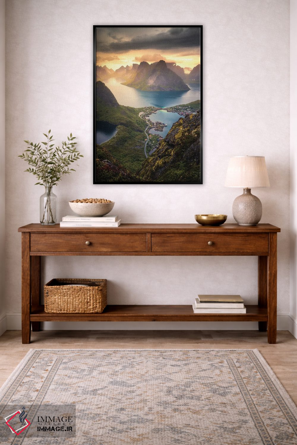 برای خانههایی که به زیباییِ آرام علاقه دارند، «رینهبریگن (نروژ)» اثرِ «لاری لوهی» اتاق را جمعوجورتر و مرتبتر نشان میدهد؛ برای خانههایی که به هماهنگی رنگها اهمیت میدهند پیشنهاد میشود. به فضا حس «گالری خانگی» میدهد، بدون اینکه اغراق کند.