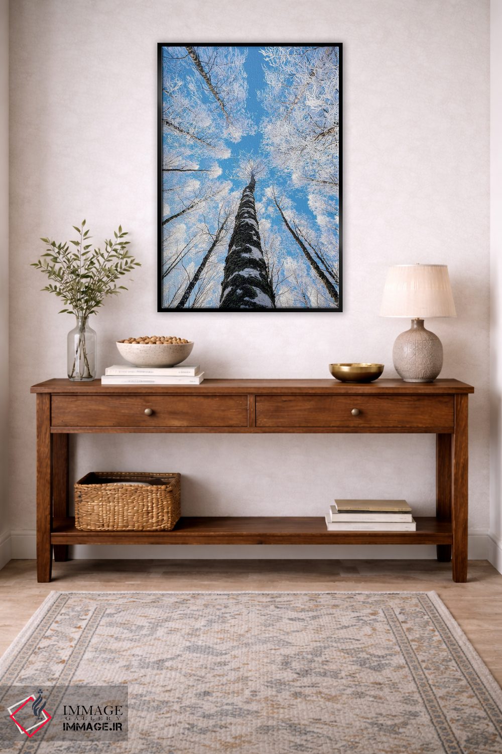 بوم گالری ایماژ نسخهی چیدماناتیوِ حرفهای از یک اثر هنری است؛ روی کنواس بدون اسید با بافت ظریف و یکنواخت با فرآیند چاپ حرفهای جیکلی (Giclée) و کنترل دقیق تونها با رنگهای آرشیوی UltraChrome HDR برای طبیعیتر دیده شدن رنگها روی دیوار؛ روی دیوار، کار یکدستتر و خوشکیفیتتر دیده میشود. تابلو پس از آمادهسازی روی کلاف کشیده میشود و نصب آن ساده و بیدردسر است. برای پروژههای معماری داخلی یا محیطهای خاص، همکاری حرفهای را با ایماژ میتوان آغاز کرد.
