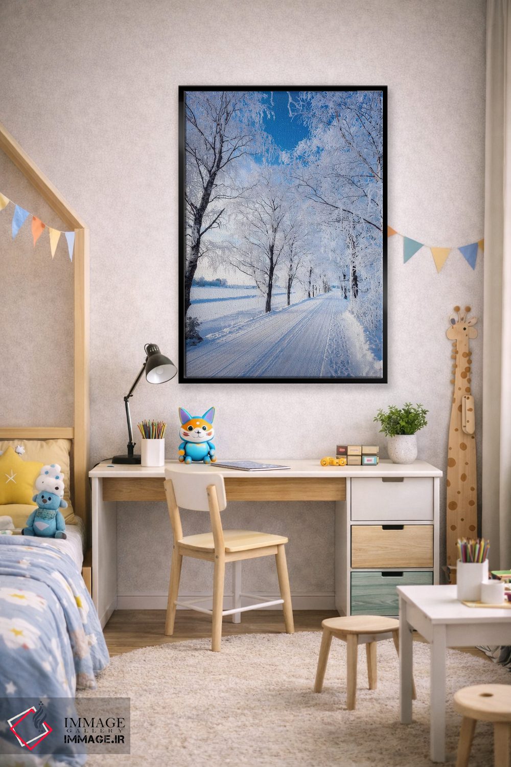 برای دیواری که دوست دارید «حرف داشته باشد»، «جاده زمستانی» اثرِ «لاری لوهی» بدون شلوغکاری، توجه را دقیق جمع میکند؛ برای اتاق خوابهای آرام و روشن پیشنهاد میشود. روی دیوار، طبیعی و متعادل دیده میشود—بیاغراق و درست.