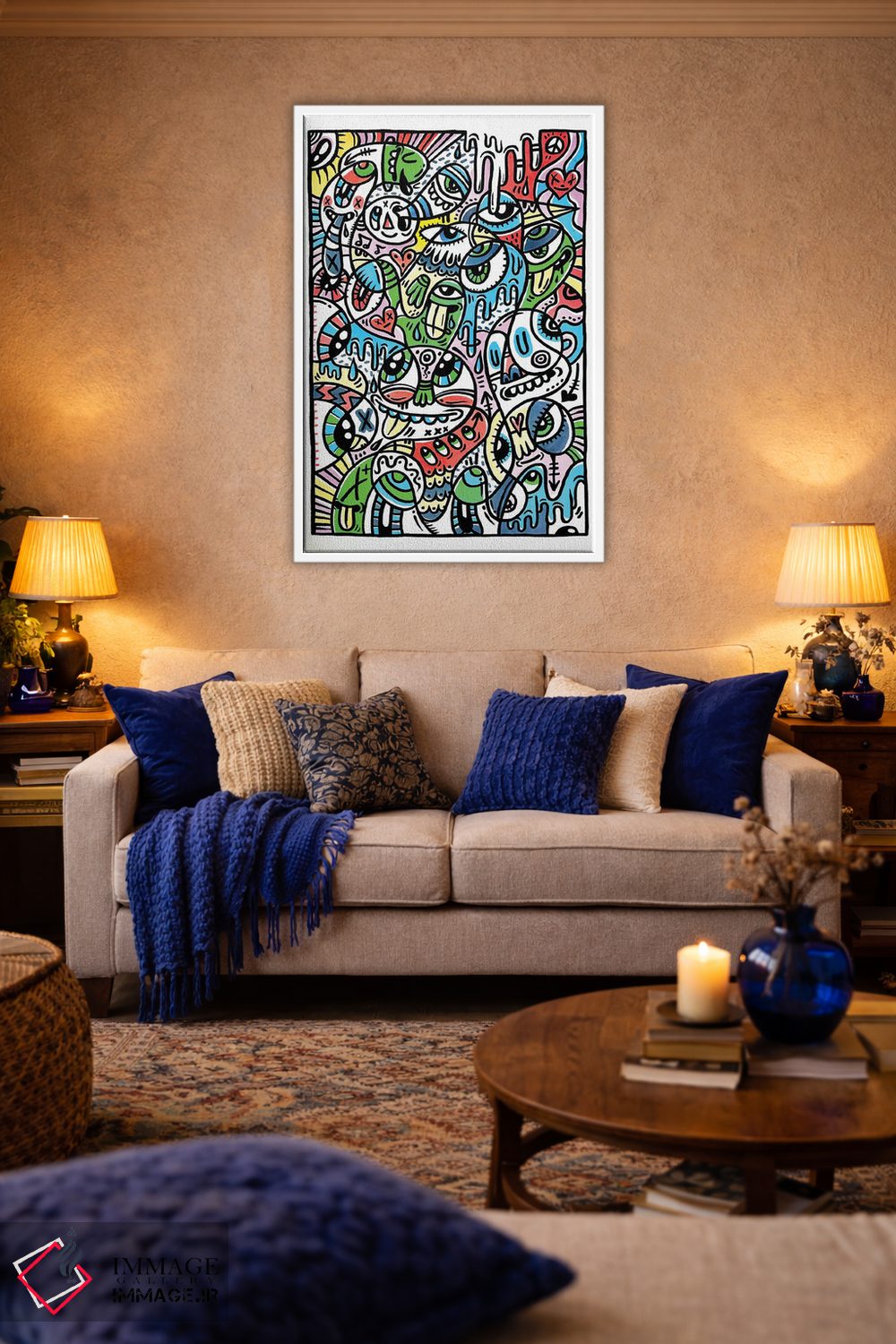 تابلو انتزاعی تفریح و بازی اثر لوک کرامپ - نمای روبه‌رو روی دیوار