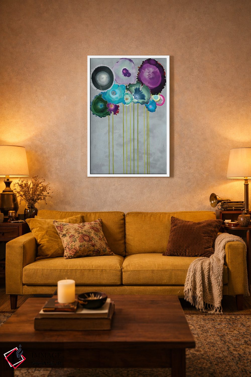 براساس پالت ترکیبی اثر، قاب تیک گرم (چوبی) پیشنهاد اول است و مشکی مات (فریم متوسط) مکمل. برای سفارشهای پروژهای با ابعاد و قابهای اختصاصی با ایماژ در تماس باشید.