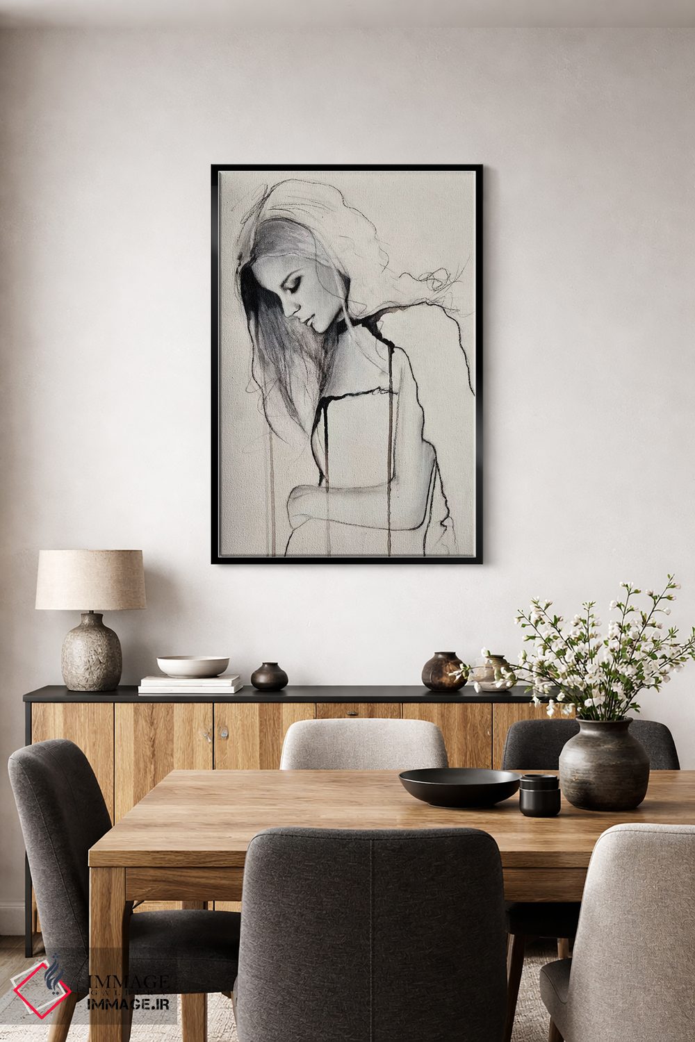 براساس پالت خنثی اثر، قاب مشکی مات (فریم باریک) پیشنهاد اول است و سفید مات (فریم باریک) مکمل. برای سفارشهای پروژهای با ابعاد و قابهای اختصاصی با ایماژ در تماس باشید.