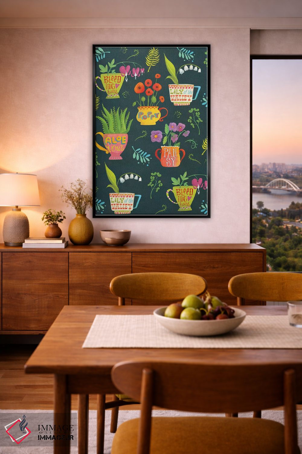 براساس پالت ترکیبی اثر، قاب تیک گرم (چوبی) پیشنهاد اول است و مشکی مات (فریم متوسط) مکمل. برای سفارشهای پروژهای با ابعاد و قابهای اختصاصی با ایماژ در تماس باشید.