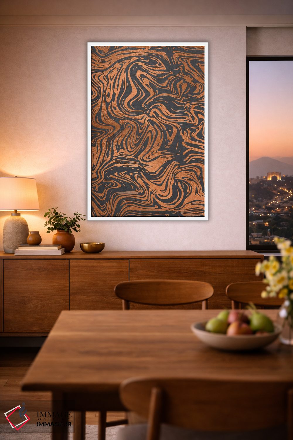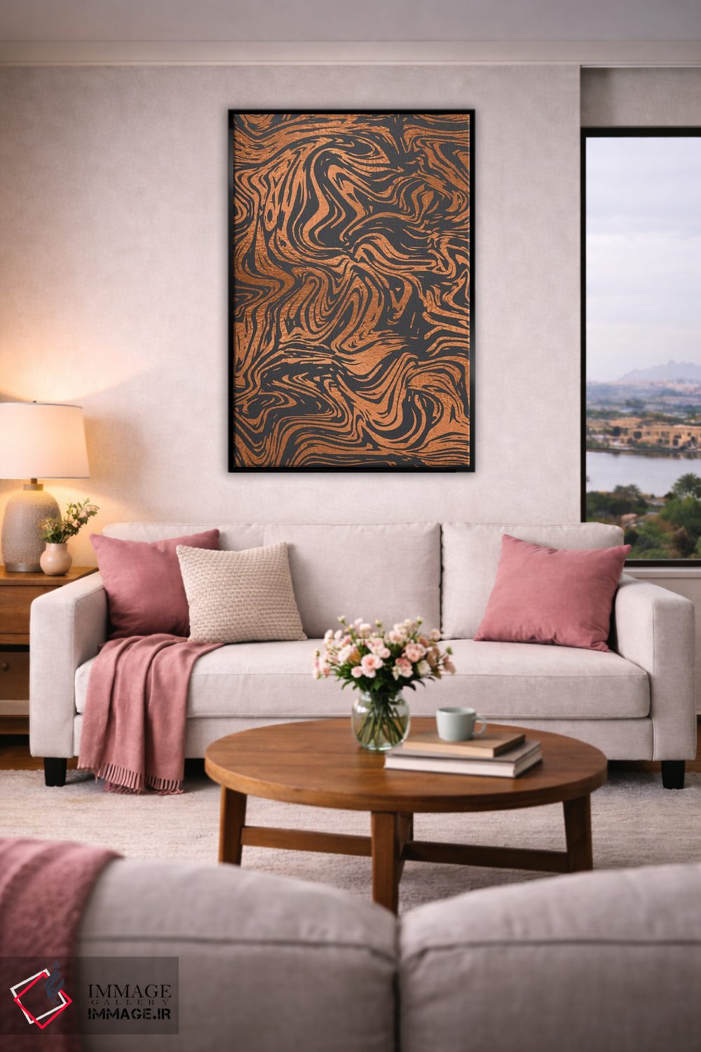 براساس پالت گرم اثر، قاب تیک گرم (چوبی) پیشنهاد اول است و مشکی مات (فریم متوسط) مکمل. برای سفارشهای پروژهای با ابعاد و قابهای اختصاصی با ایماژ در تماس باشید.