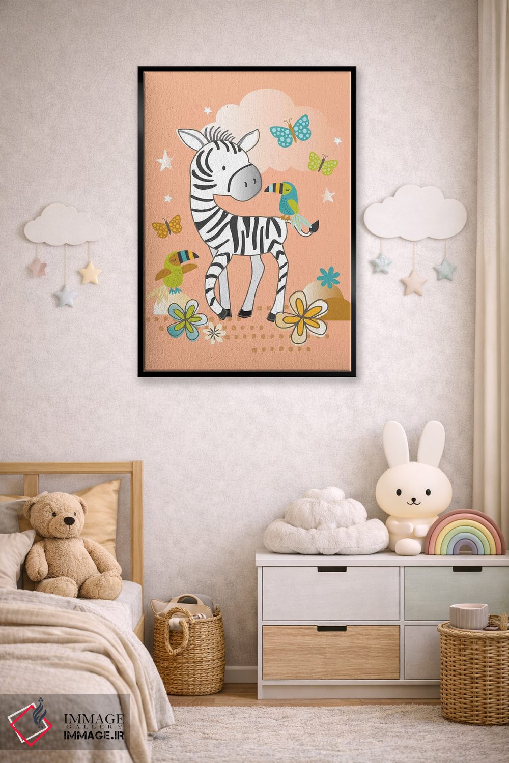 برای اتاقی که به یک عنصر دوستداشتنی نیاز دارد، «اتاق کودک جنگلی ۲» اثرِ «لیزا وایتباتن» بدون کودکانه شدن، بازیگوش و خوشپرداخت میماند؛ برای خانههایی با چوب و پارچههای گرم انتخابی خوشسلیقه است. با قاب چوبی یا مشکی، حس مرتبتری پیدا میکند.