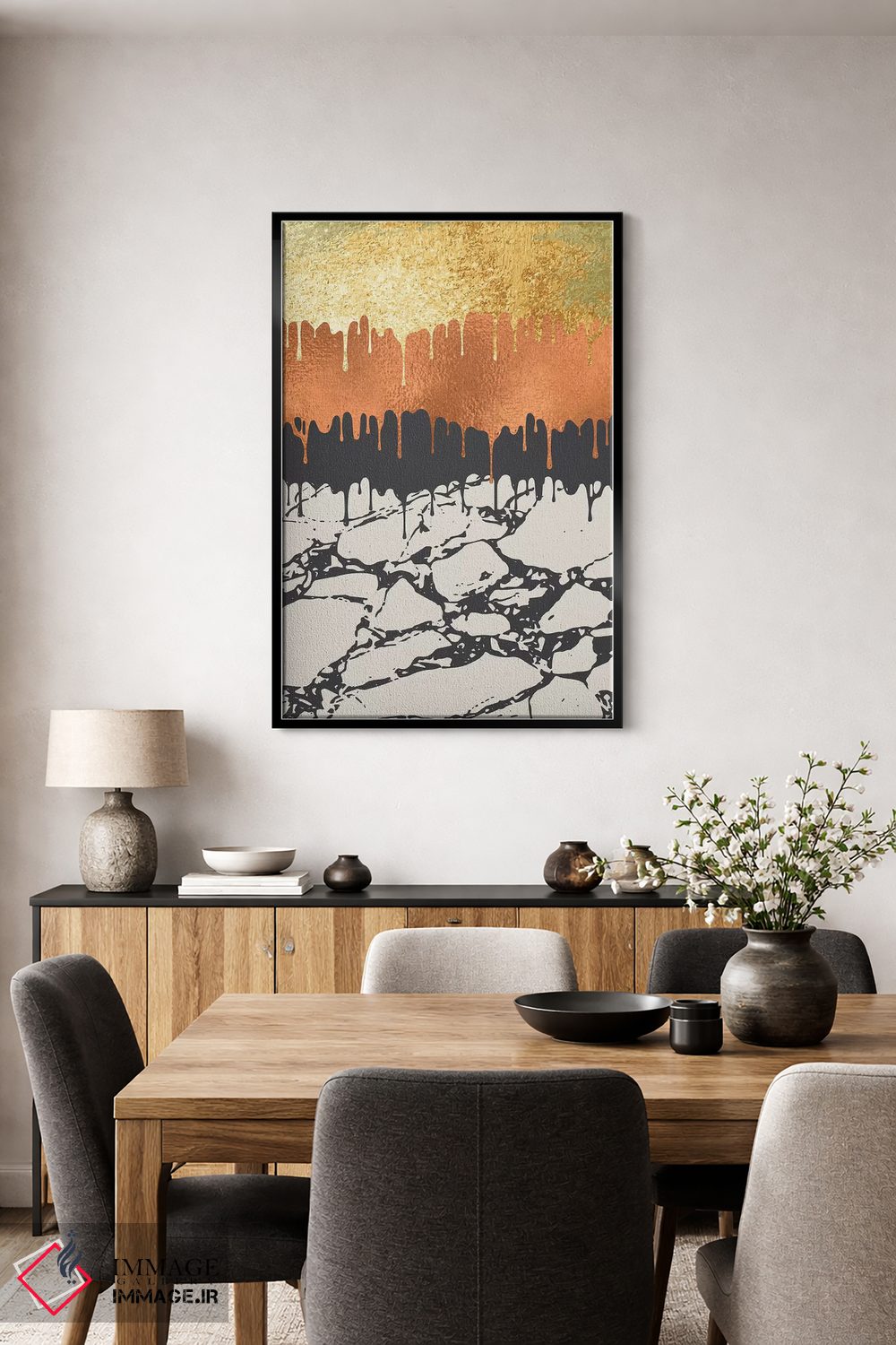 براساس پالت گرم اثر، قاب تیک گرم (چوبی) پیشنهاد اول است و مشکی مات (فریم متوسط) مکمل. برای سفارشهای پروژهای با ابعاد و قابهای اختصاصی با ایماژ در تماس باشید.