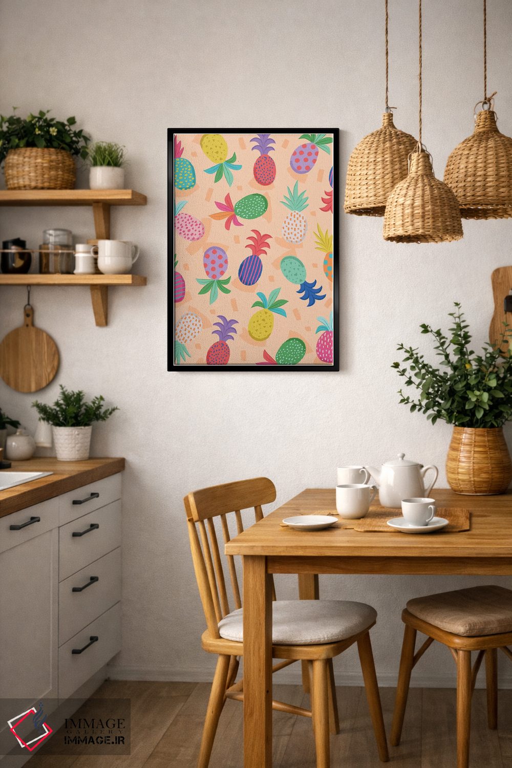 این تابلو با موضوعِ این دسته و اجرای هنری، یک انتخاب جذاب برای آشپزخانه یا فضای غذاخوری است اثرِ «لیزا وایتباتن».
