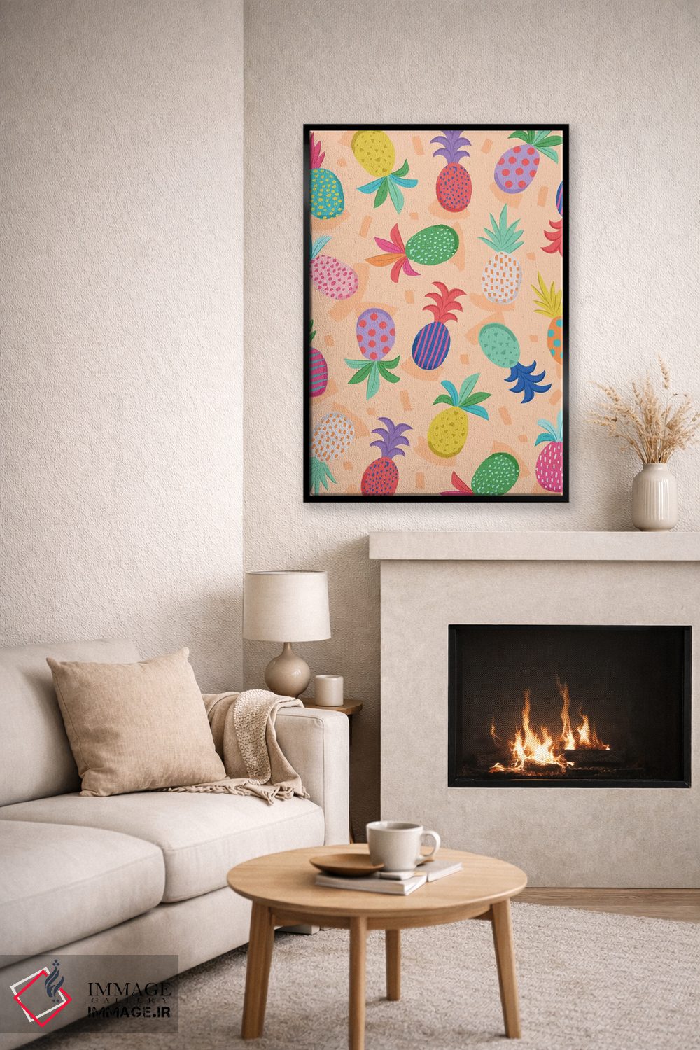 براساس پالت ترکیبی اثر، قاب بلوط روشن (چوبی) پیشنهاد اول است و استخوانی ملایم مکمل. برای سفارشهای پروژهای با ابعاد و قابهای اختصاصی با ایماژ در تماس باشید.