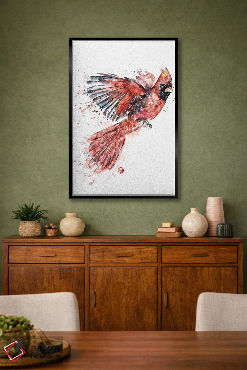 برای دیوارهای ساده، «کارباورال (پرنده)» اثرِ «لیزا وایتهاوس» حس طبیعت را بیدغدغه وارد خانه میکند؛ برای راهروها و ورودیهای گرم انتخابی خوشسلیقه است. با قاب چوبی یا مشکی، حس مرتبتری پیدا میکند.