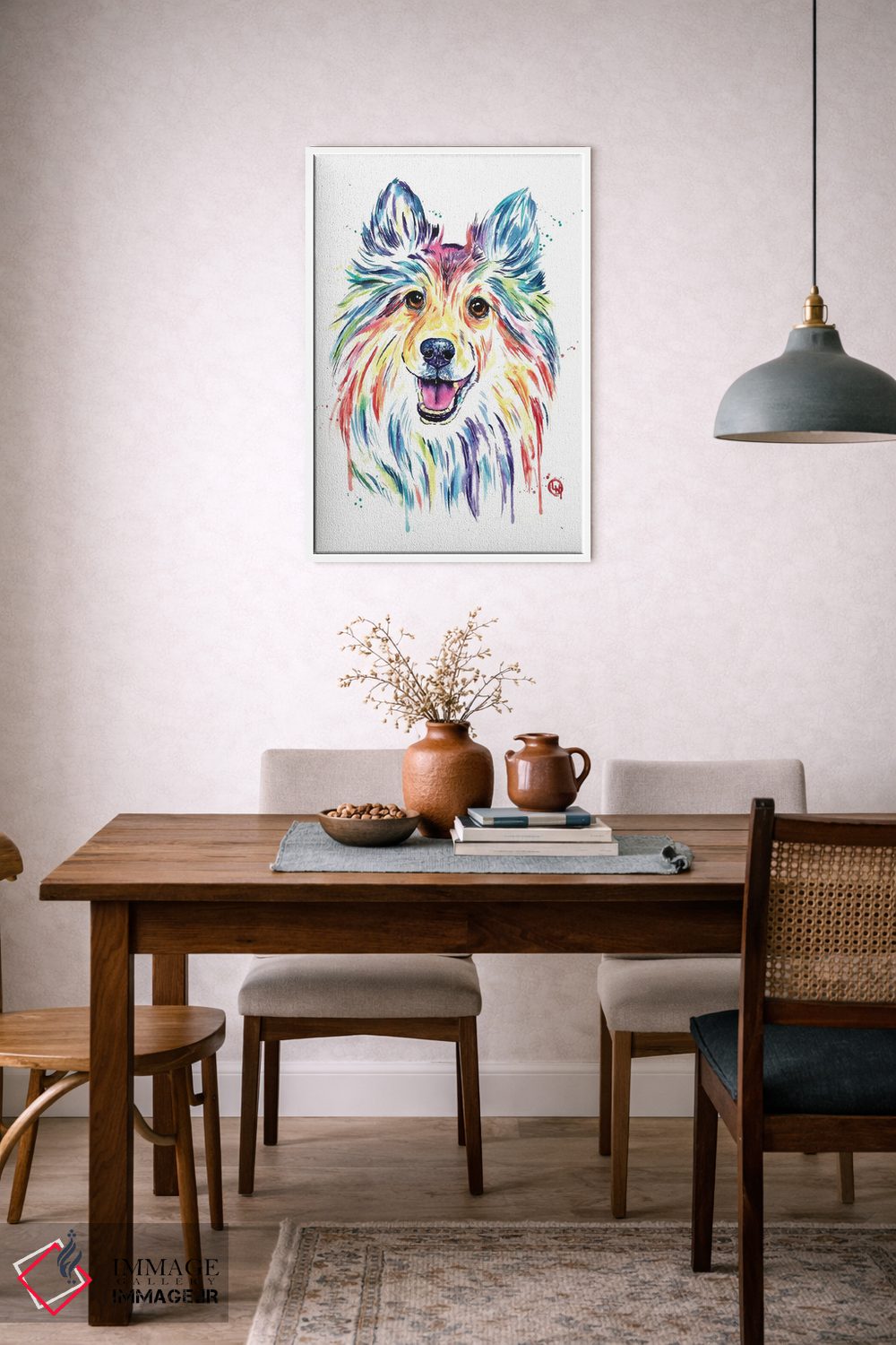 «شلتی (نژاد سگ)» اثرِ «لیزا وایتهاوس» میتواند در کنار رنگهای خنثی، تضاد دلچسبی بسازد؛ برای دکورهایی با رنگهای خنثی پیشنهاد میشود. اگر دنبال اثر دوستداشتنیِ «بیغلو» هستید، این یکی دقیق مینشیند.