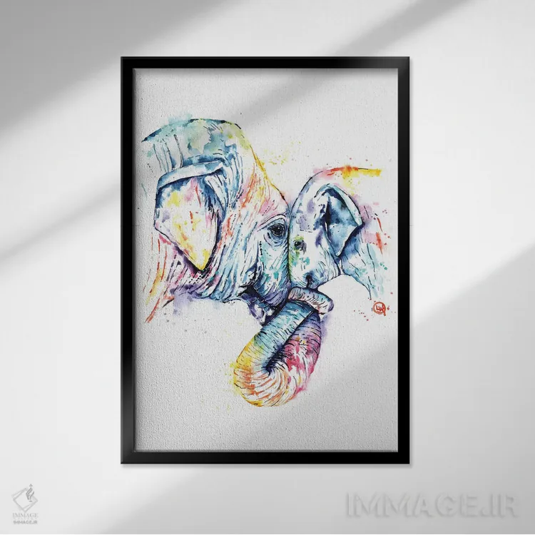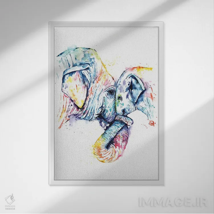تابلو مدرن فیل مادر و بچه اثر لیزا وایت هاوس