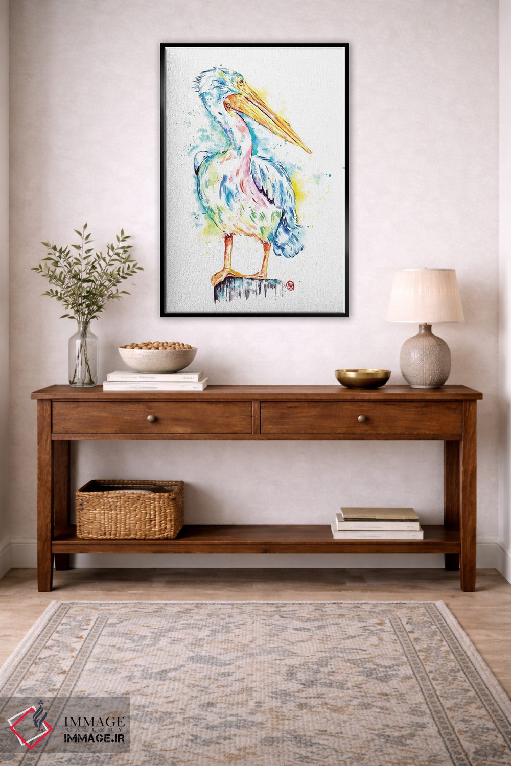 اگر به آثار حیوانات علاقه دارید، «پلیکان» اثرِ «لیزا وایتهاوس» به فضا، گرمیِ ملایم اضافه میکند، برای راهروها و ورودیهای گرم گزینهٔ مناسبیست. هم فضا را گرم میکند، هم شلوغش نمیکند.