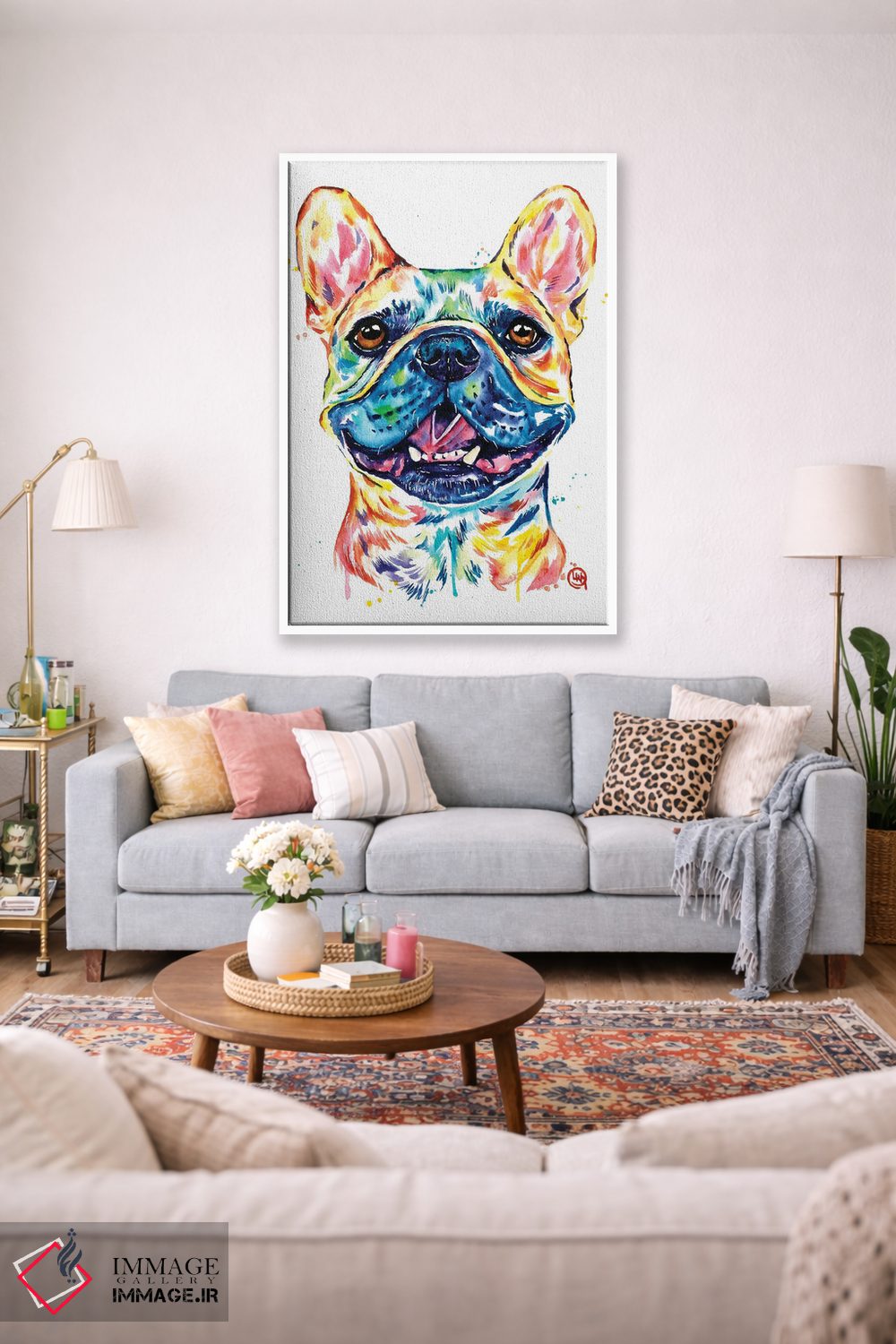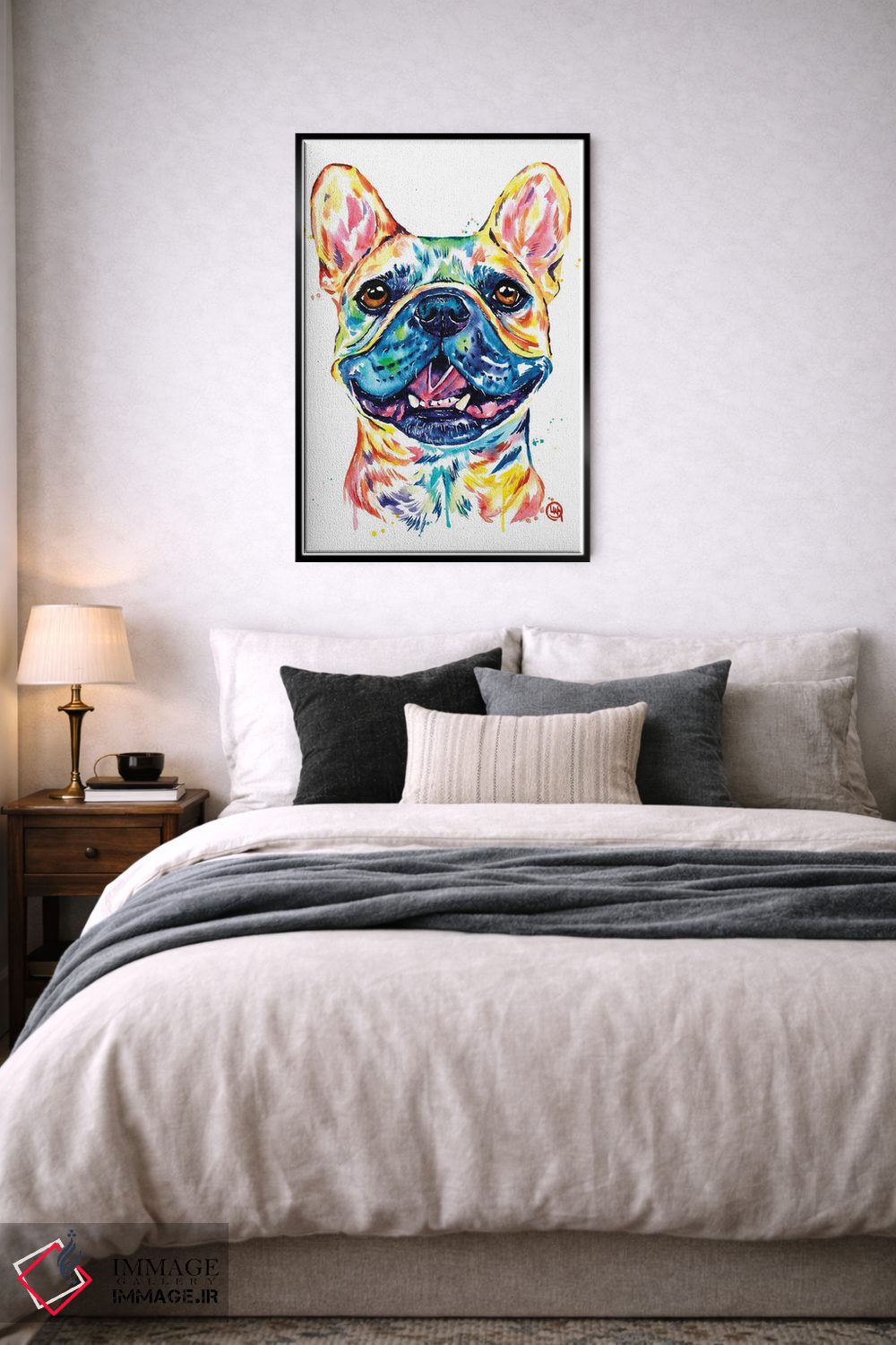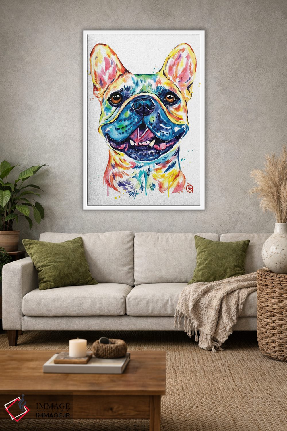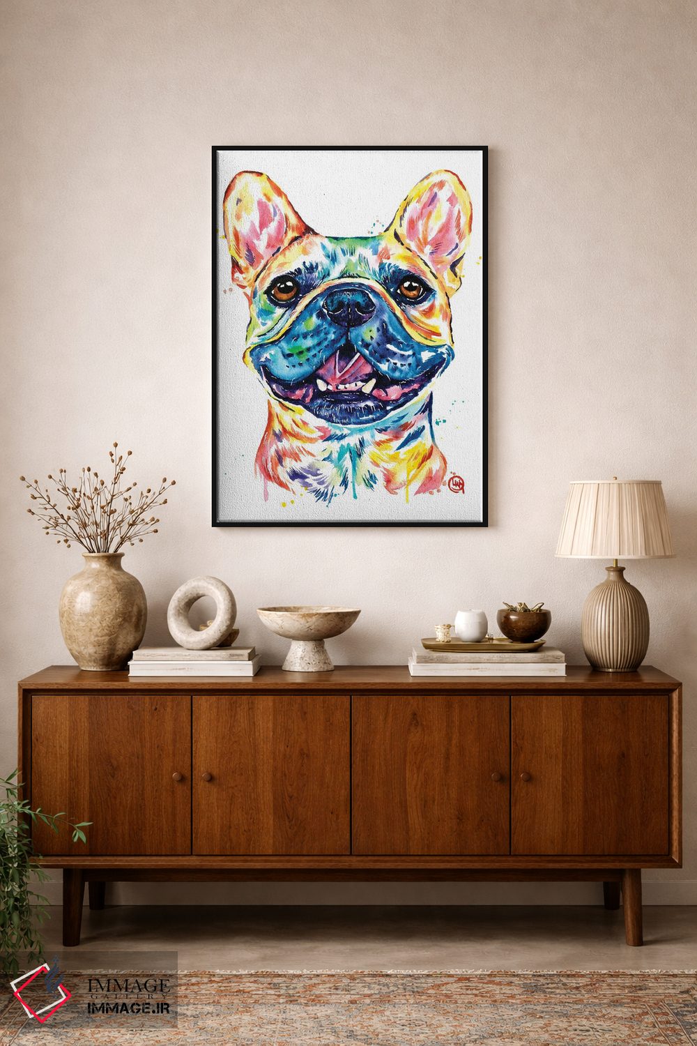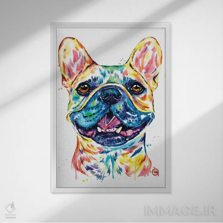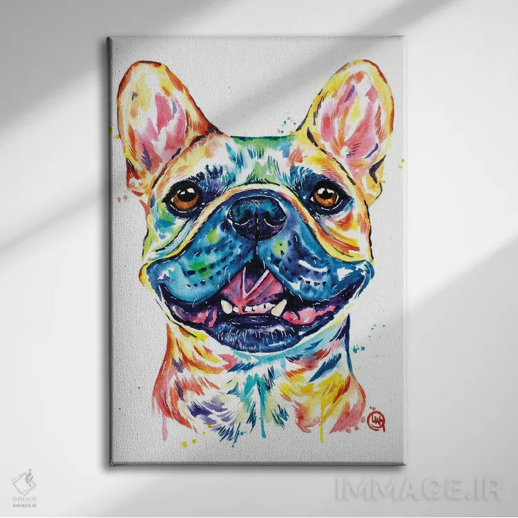تابلو دکوراتیو بولداگ فرانسوی نخودی رنگ اثر لیزا وایت هاوس