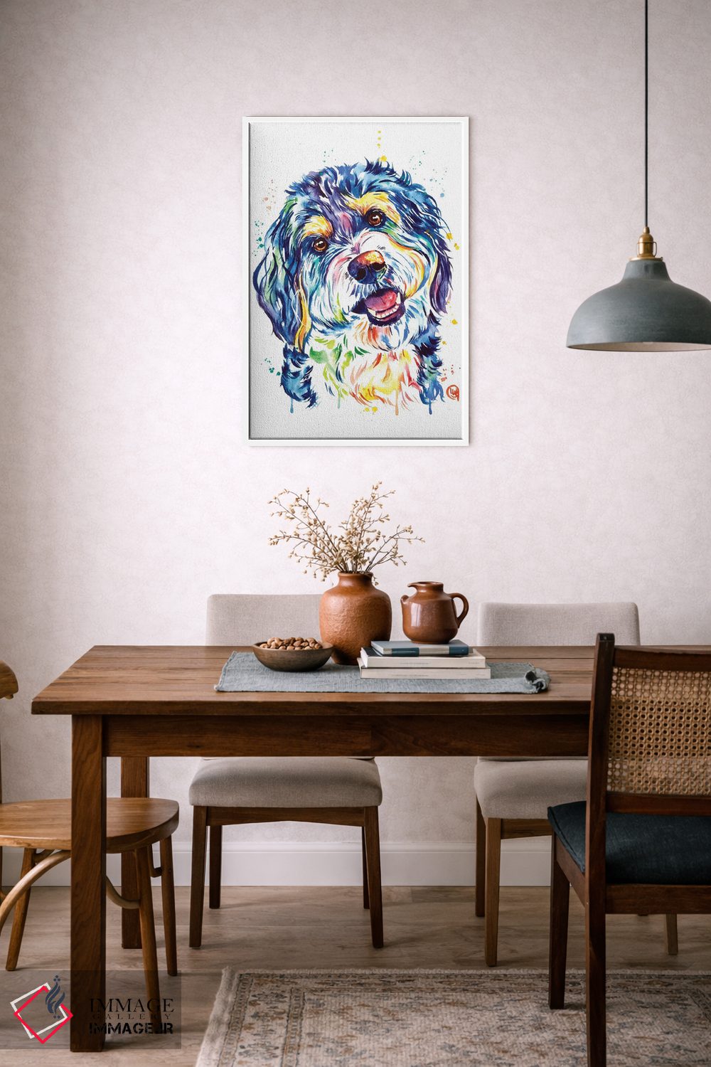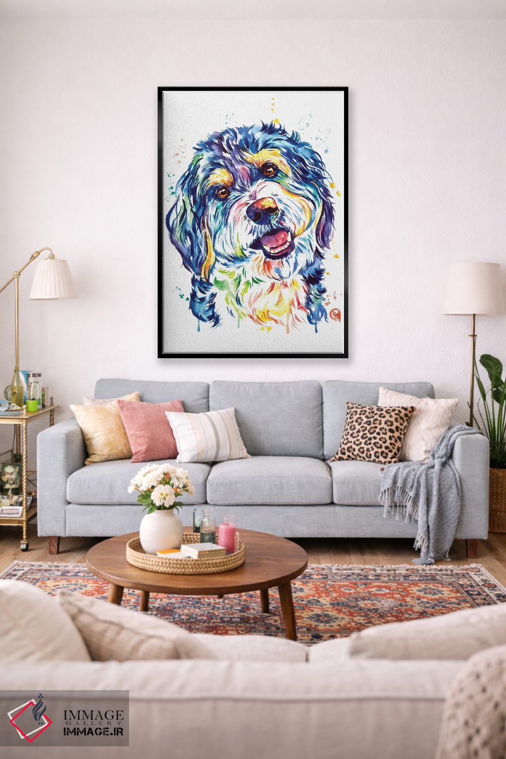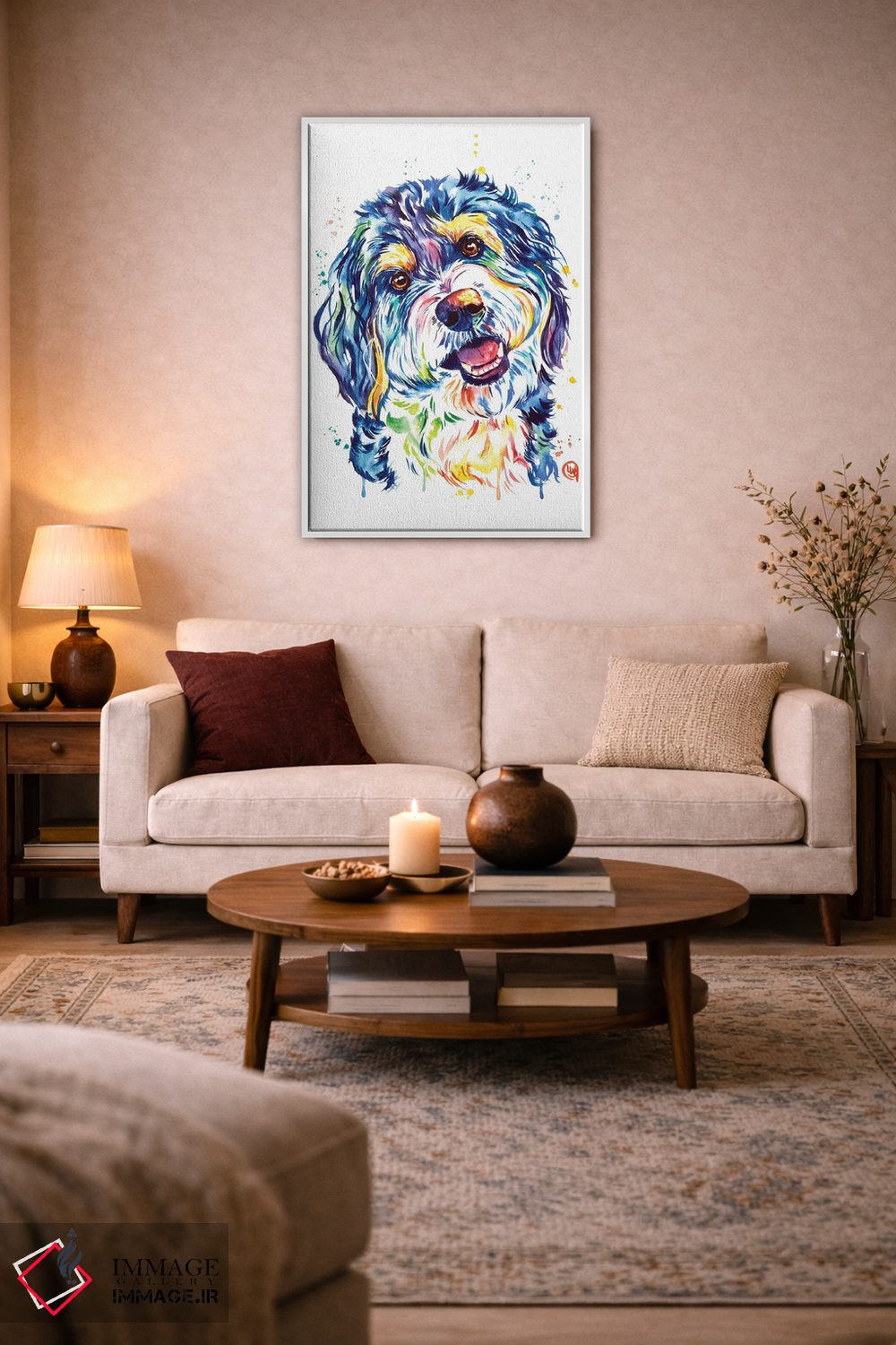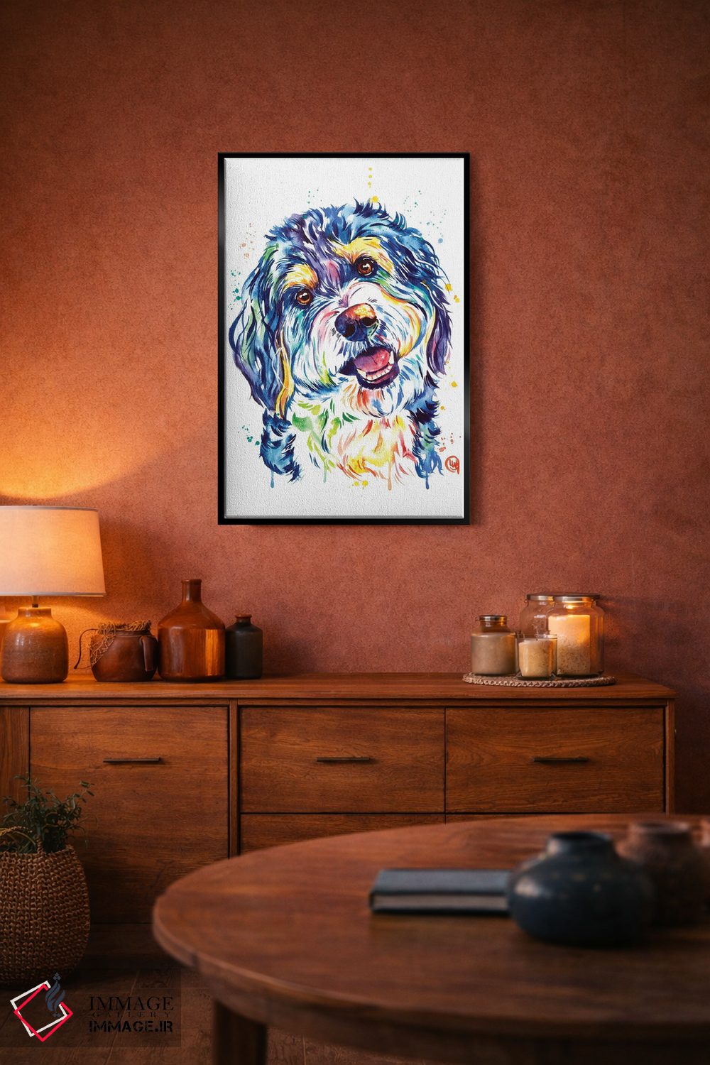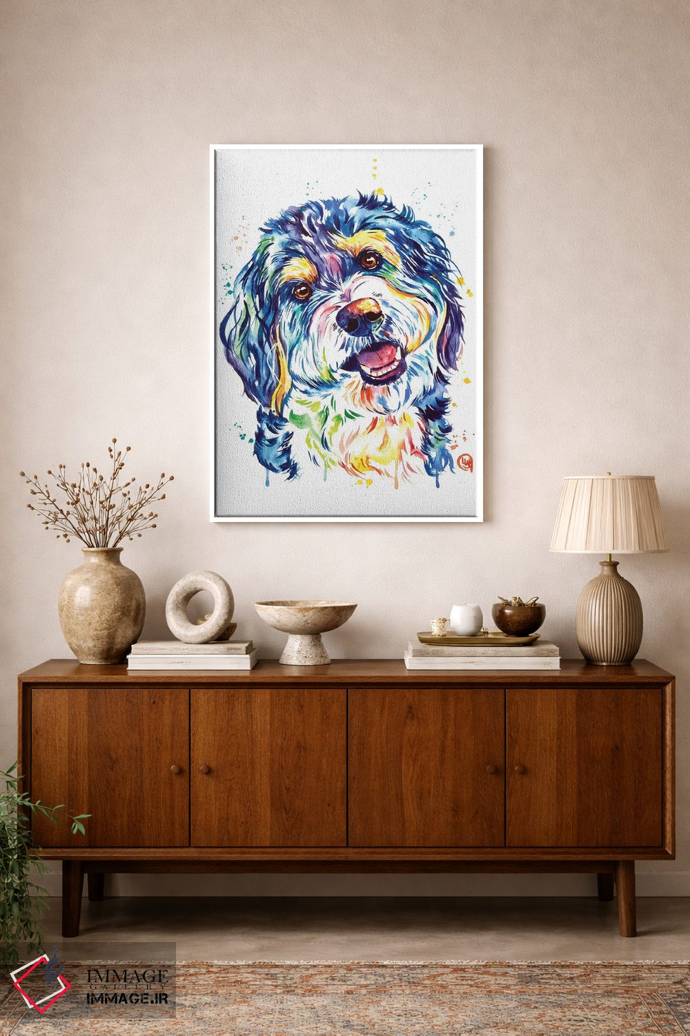 برای دیوارهای ساده، «برنیدودل (نژاد سگ)» اثرِ «لیزا وایتهاوس» به فضا، گرمیِ ملایم اضافه میکند؛ برای اتاق کودک (بدون لحن کودکانه) انتخابی خوشسلیقه است. حسش صمیمی است، اما کیفیتش جدی و خوشپرداخت.