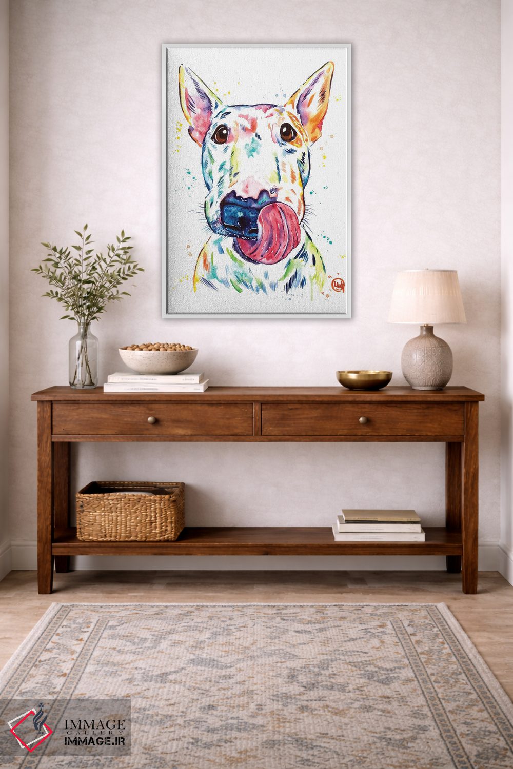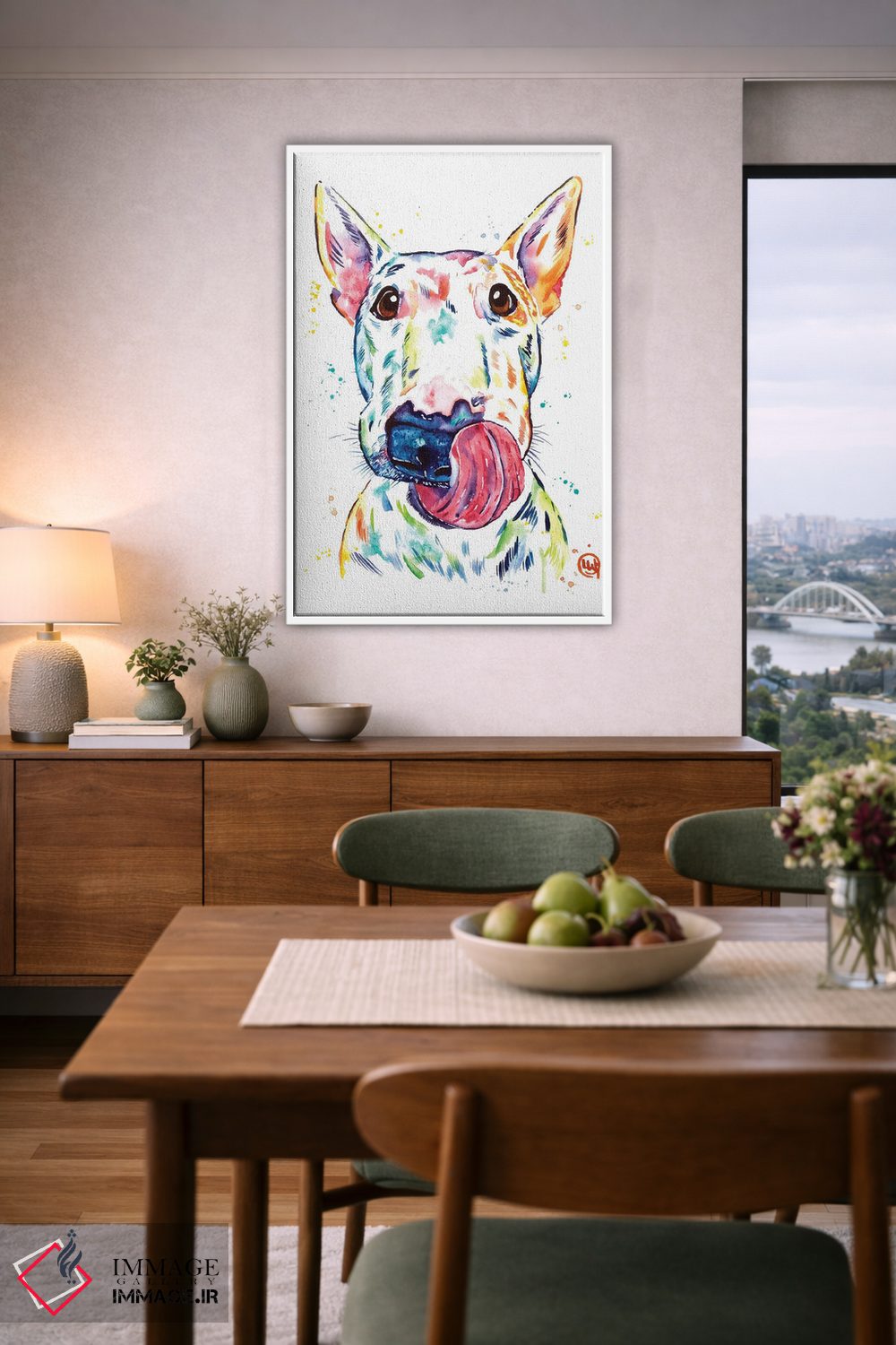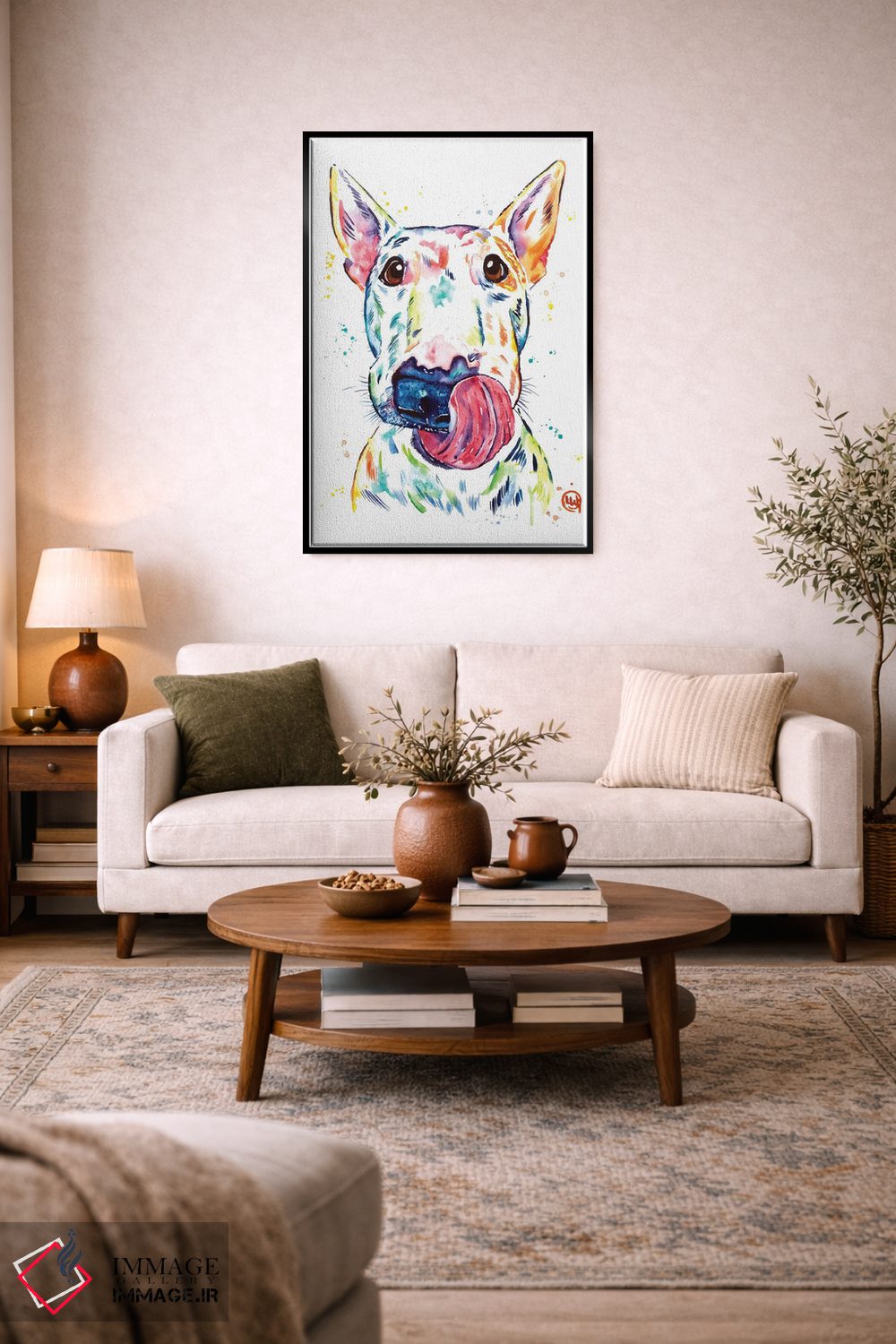 «بول تریر (نژاد سگ)» اثرِ «لیزا وایتهاوس» میتواند فضا را صمیمیتر و دعوتکنندهتر نشان بدهد؛ برای فضاهای روستیک یا بوهو پیشنهاد میشود. هم فضا را گرم میکند، هم شلوغش نمیکند.