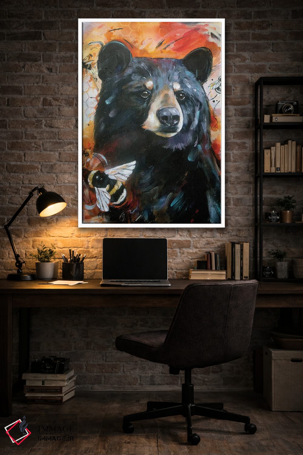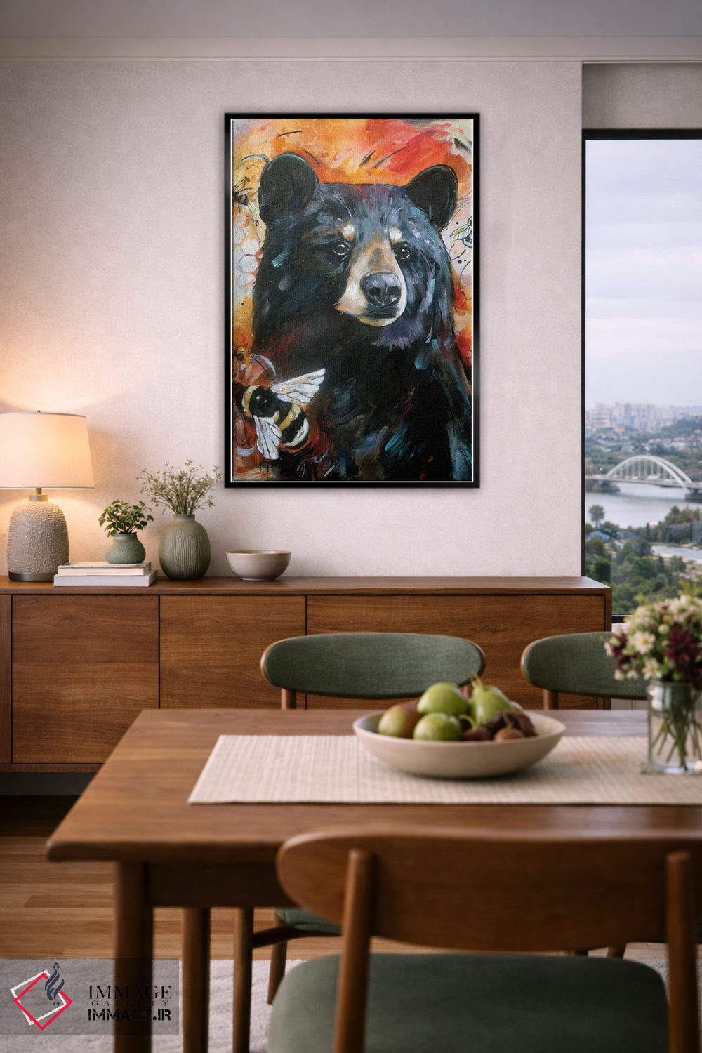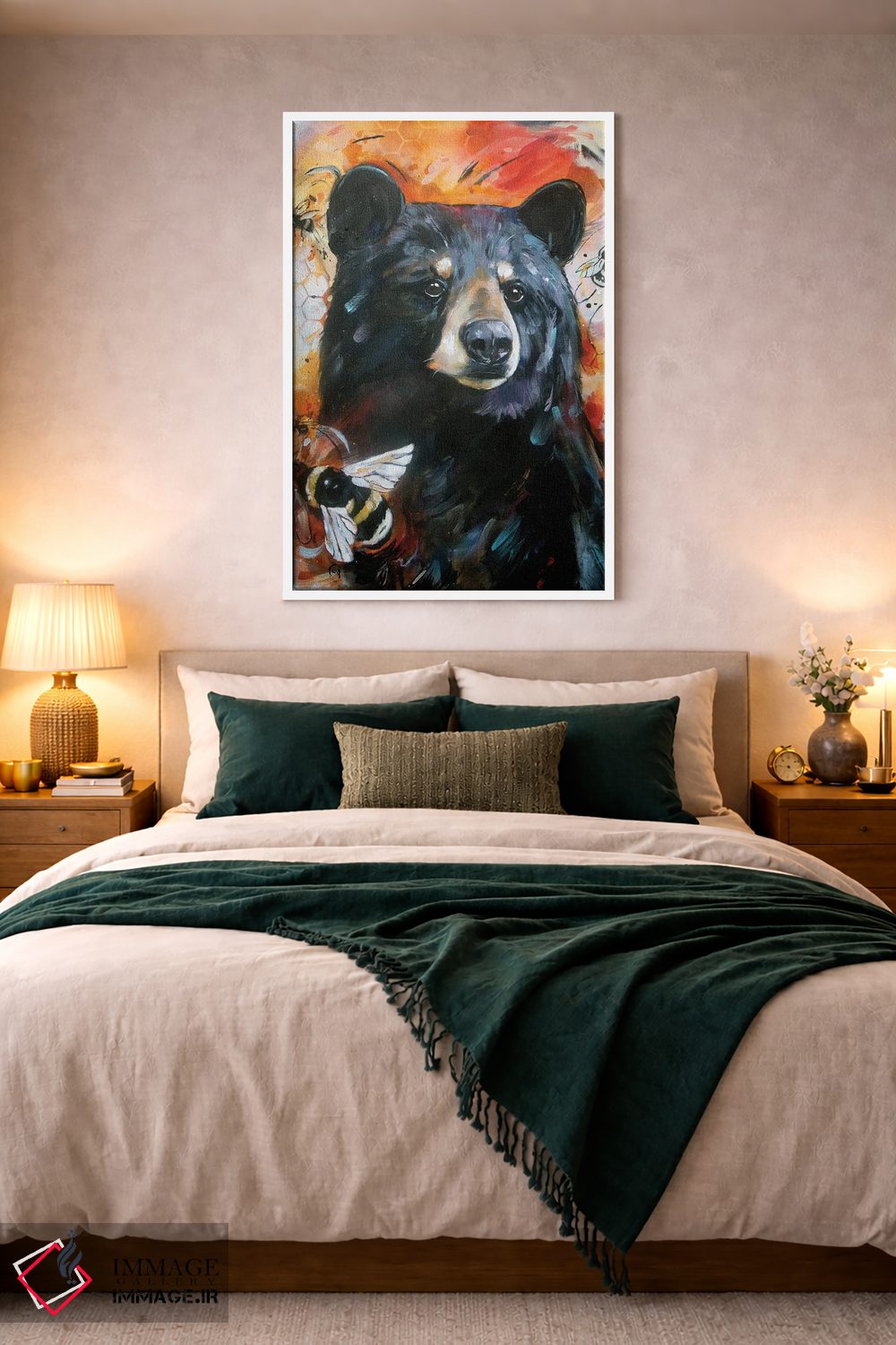 «خرس و زنبورها» اثرِ «لیزا وایتهاوس» میتواند یک لبخند ریز به چیدمان بدهد؛ برای خانههایی با چوب و پارچههای گرم پیشنهاد میشود. به دیوار، قصه میدهد—اما قصهای آرام و شیک.