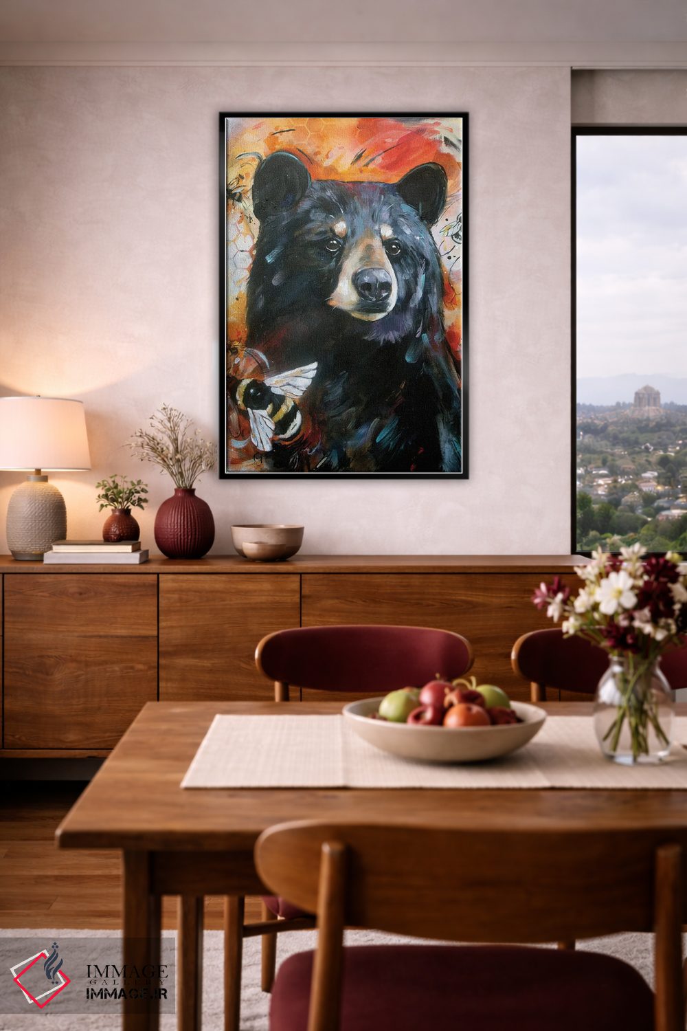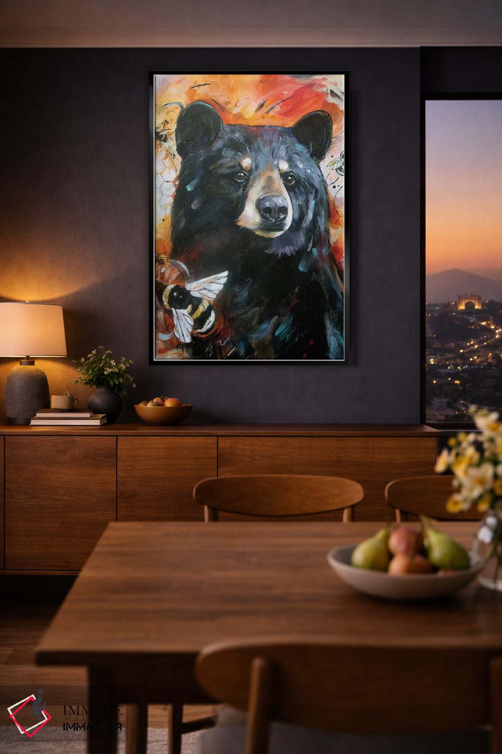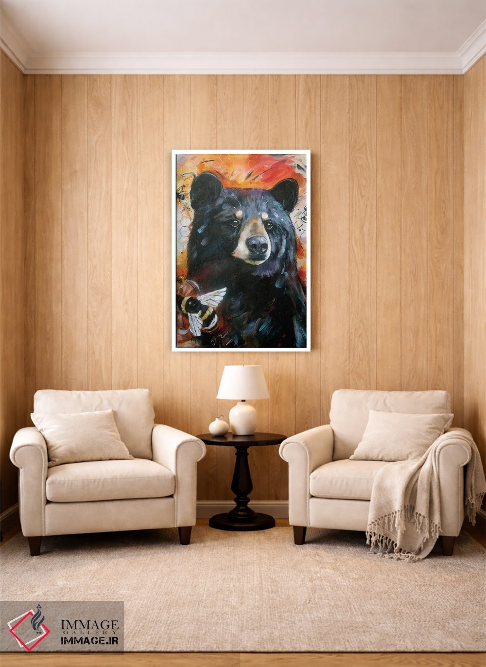 «خرس و زنبورها» اثرِ «لیزا وایتهاوس» میتواند یک لبخند ریز به چیدمان بدهد؛ برای خانههایی با چوب و پارچههای گرم پیشنهاد میشود. به دیوار، قصه میدهد—اما قصهای آرام و شیک.