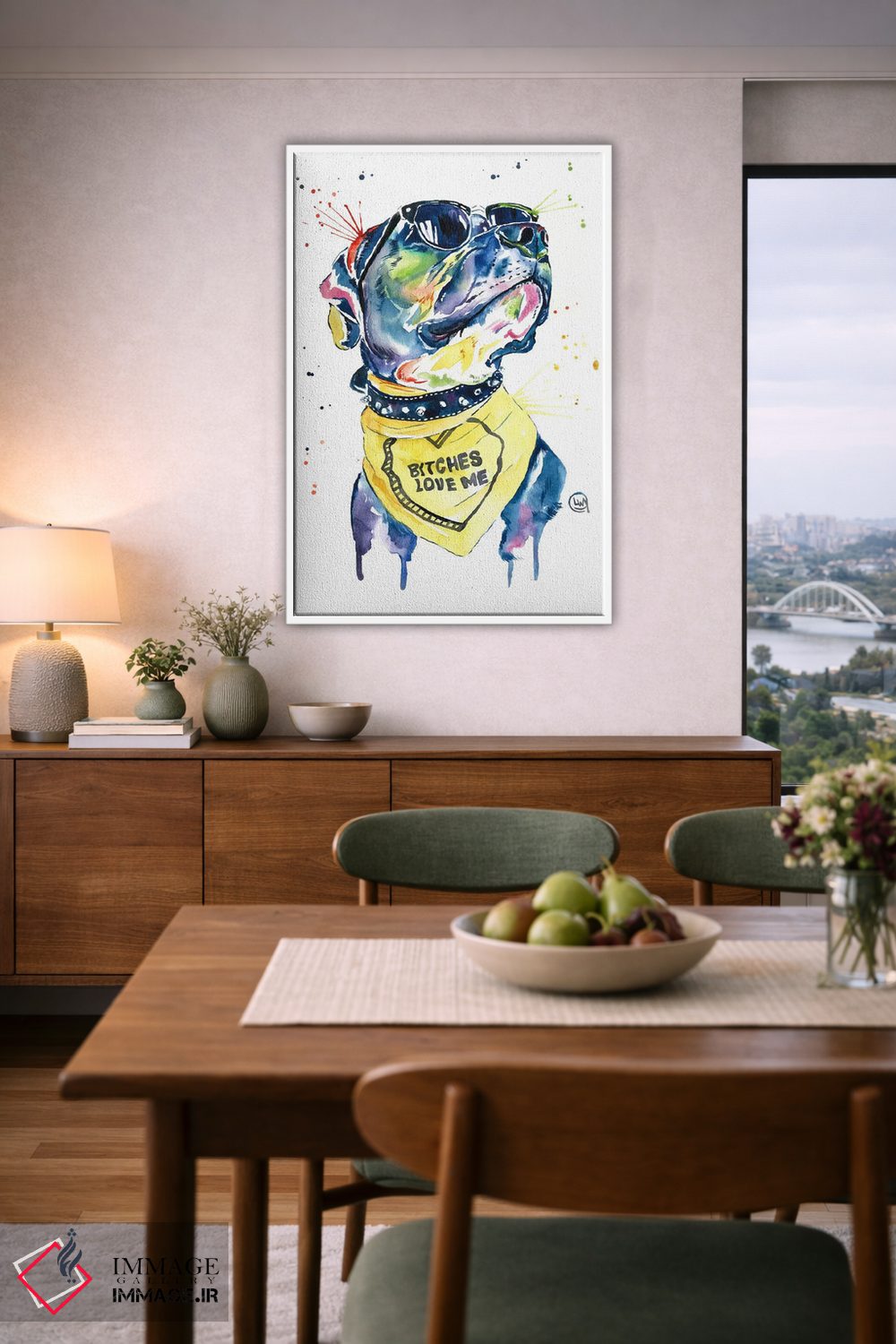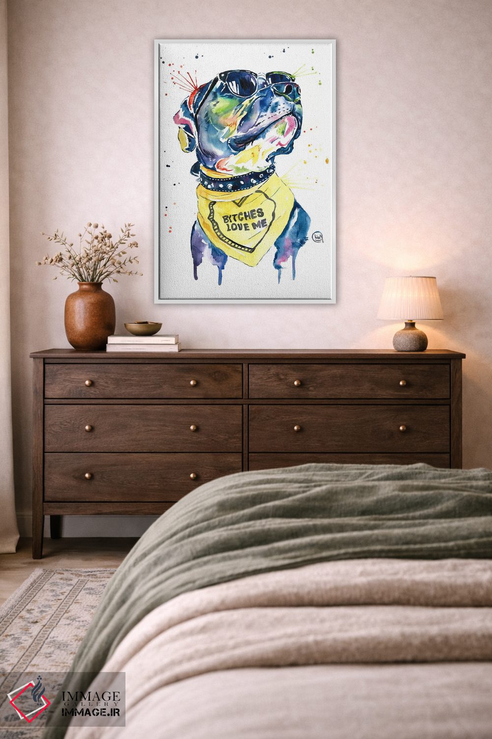 برای اتاقی که به یک عنصر دوستداشتنی نیاز دارد، «عاشق بول (بازی با کلمه بولداگ)» اثرِ «لیزا وایتهاوس» بافت و جزئیات را طوری نشان میدهد که نگاه میماند؛ برای دکورهایی با رنگهای خنثی انتخابی خوشسلیقه است. به دیوار، قصه میدهد—اما قصهای آرام و شیک.