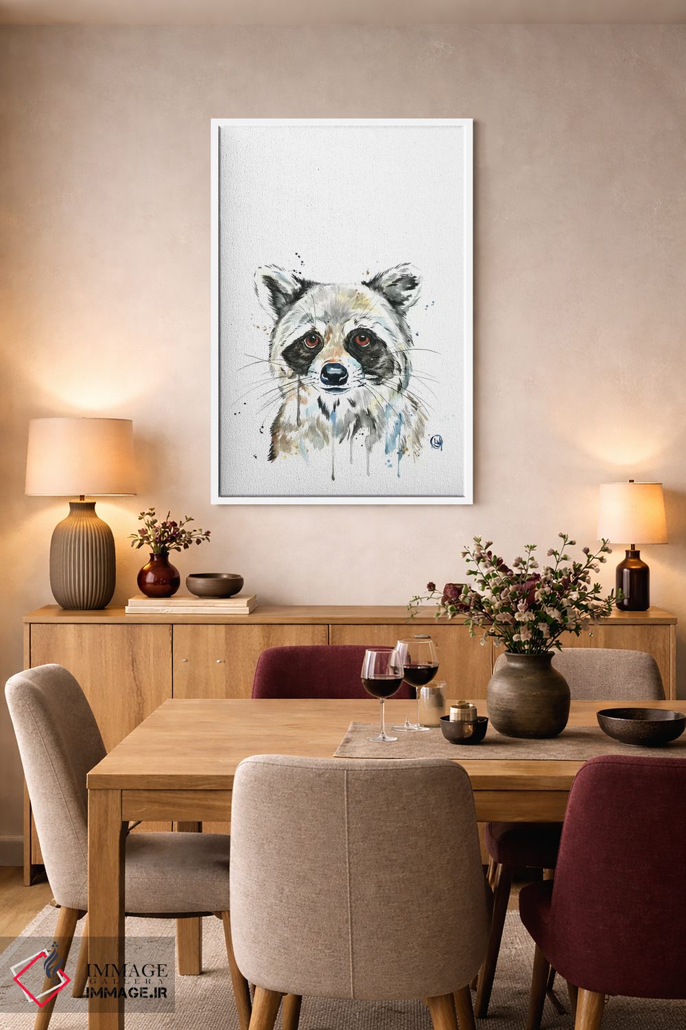 اگر میخواهید دیوار کمی سرزندگیِ محترمانه داشته باشد، «راکون پیکابو (بازی قایم باشک)» اثرِ «لیزا وایتهاوس» یک لبخند ریز به چیدمان میدهد، برای خانههایی با چوب و پارچههای گرم گزینهٔ مناسبیست. حسش صمیمی است، اما کیفیتش جدی و خوشپرداخت.