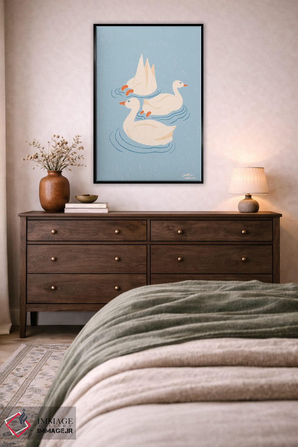 «اردکها» اثرِ «لیدیا الن» از آن کارهاییست که حس طبیعت را بیدغدغه وارد خانه میکند؛ برای دکورهای مدرن و مینیمال انتخاب خوبیست. با نورپردازی نقطهای، جذابتر هم میشود.