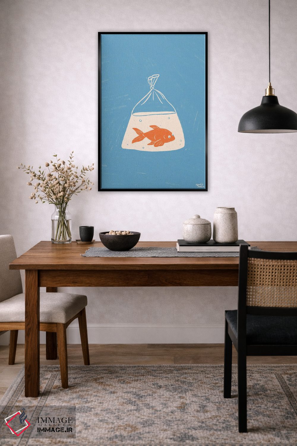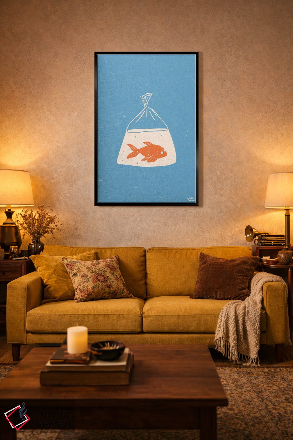 تابلو دکوراتیو ماهی قرمز اثر لیدیا الن - نمای روبه‌رو روی دیوار
