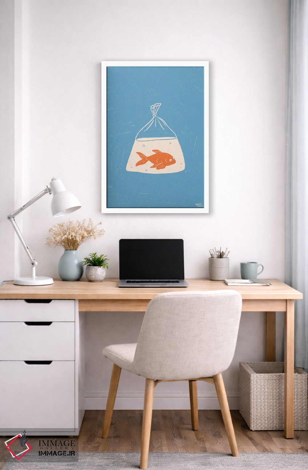 تابلو دکوراتیو ماهی قرمز اثر لیدیا الن - نمای قاب‌دار سفید